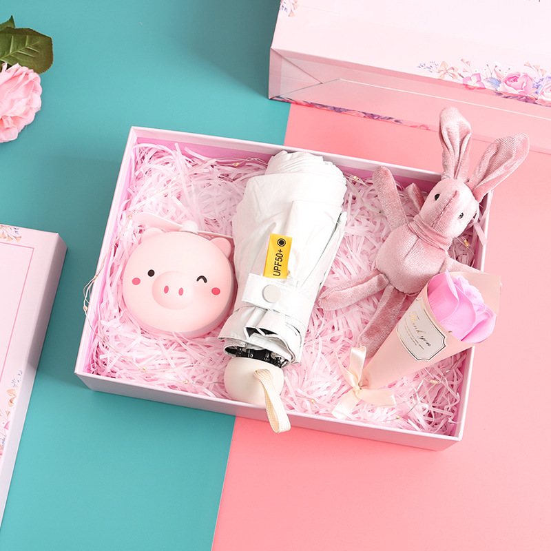 piggy makeup mirror fan + eight bones 50% off powder umbrella + suit gift box