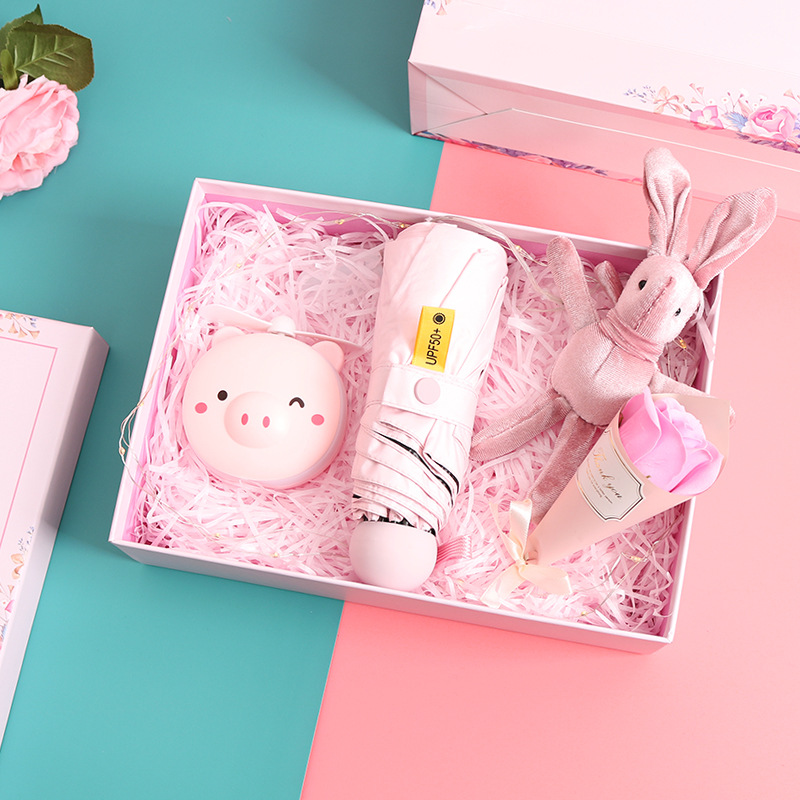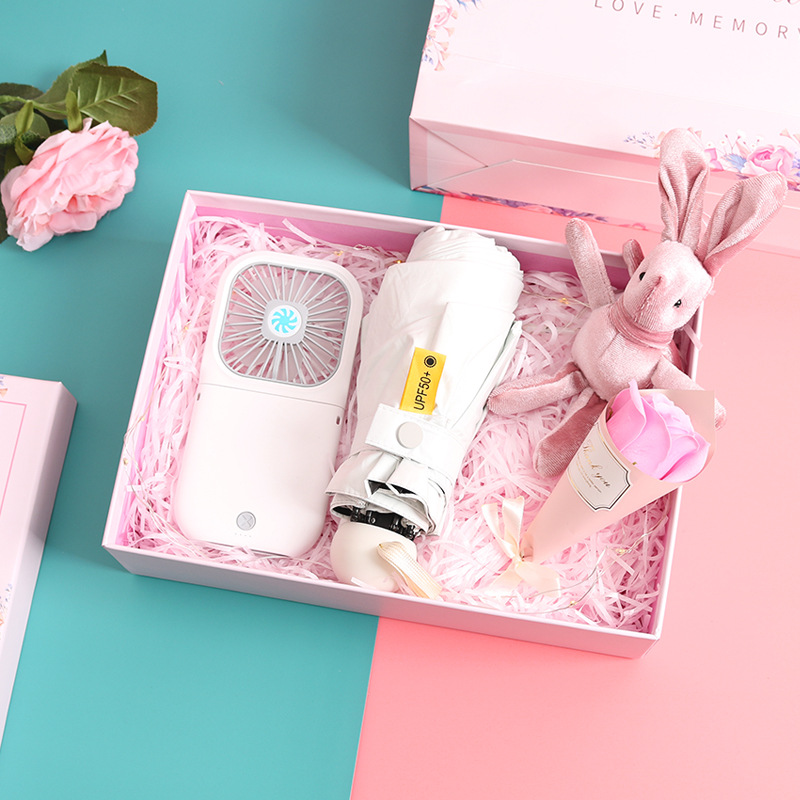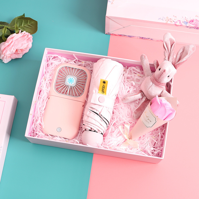 pink rechargeable fan + eight bones 50% off pink umbrella + suit gift box