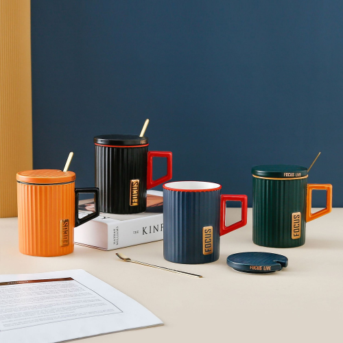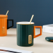 creative personalized fashion vertical pattern ceramic mug simple nordic style office household coffee cup with cover spoon