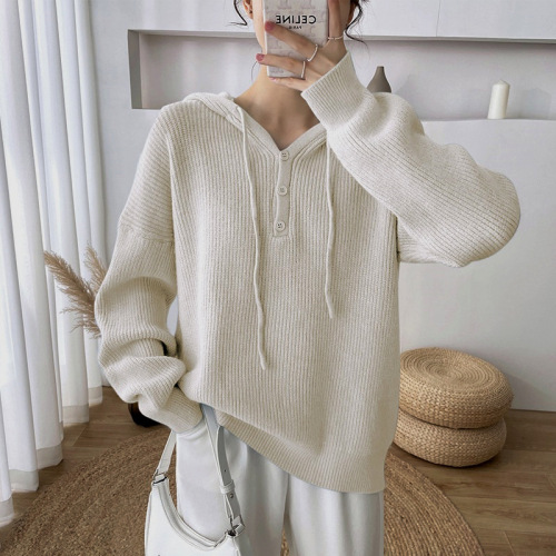 women's hooded pullover loose outer wear 2022 autumn and winter new retro japanese idle style western style knitted top 中文版