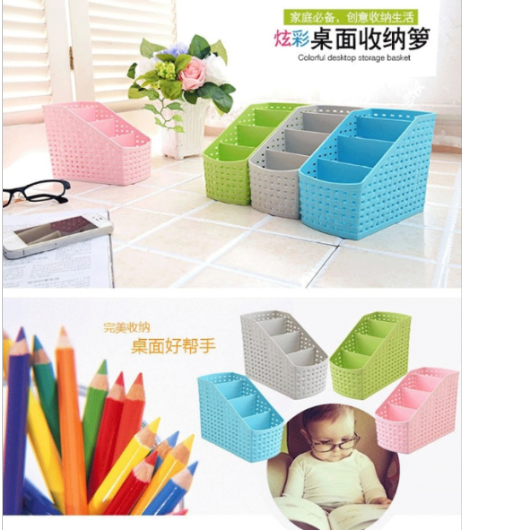 2019 Small 4-Grid Storage Box Desktop Storage Basket Office Bedroom Organizing Helper Plastic Multifunctional