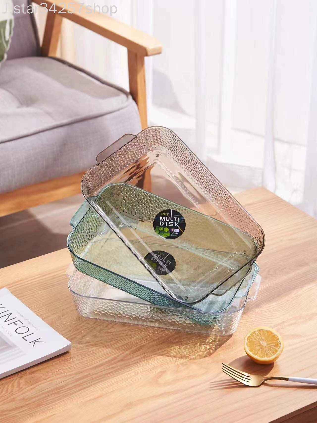 Tray Rectangular European Style Household Fruit Plate Living Room Water Cup Tray Set Cup Plate Transparent Plate Dish 中文版