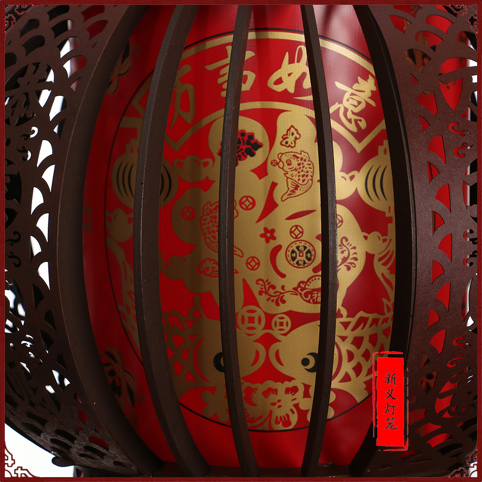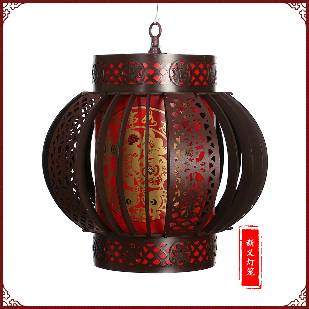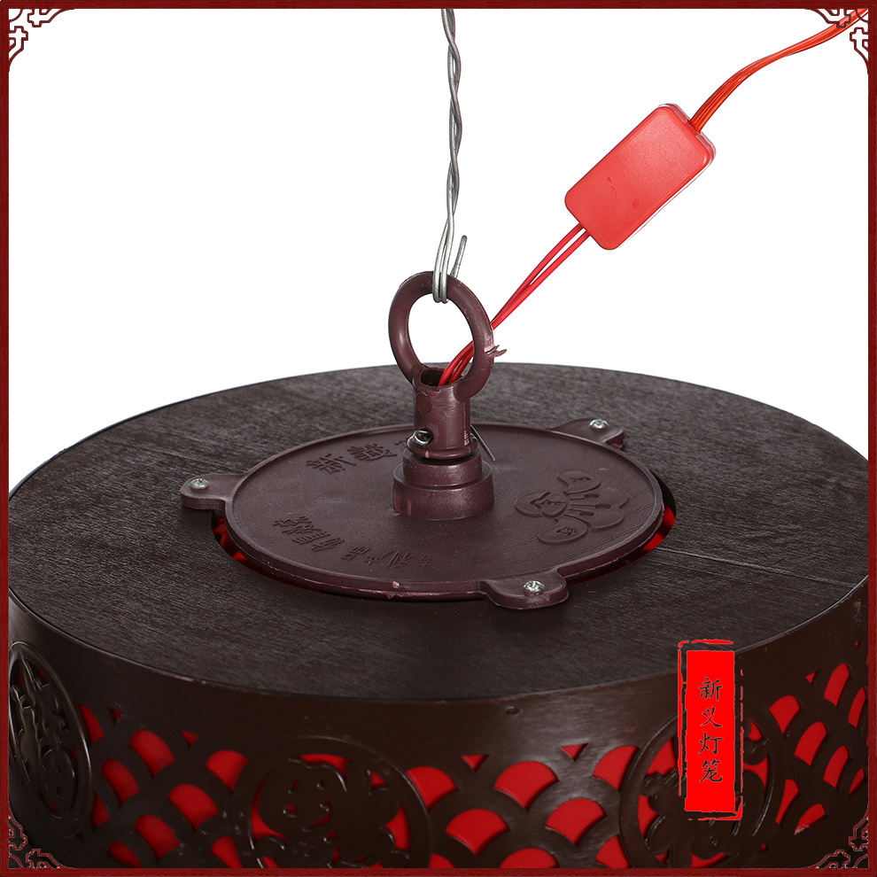 new antique solid wood red round lantern with light plug-in luminous rotatable chinese restaurant balcony interior decoration 中文版