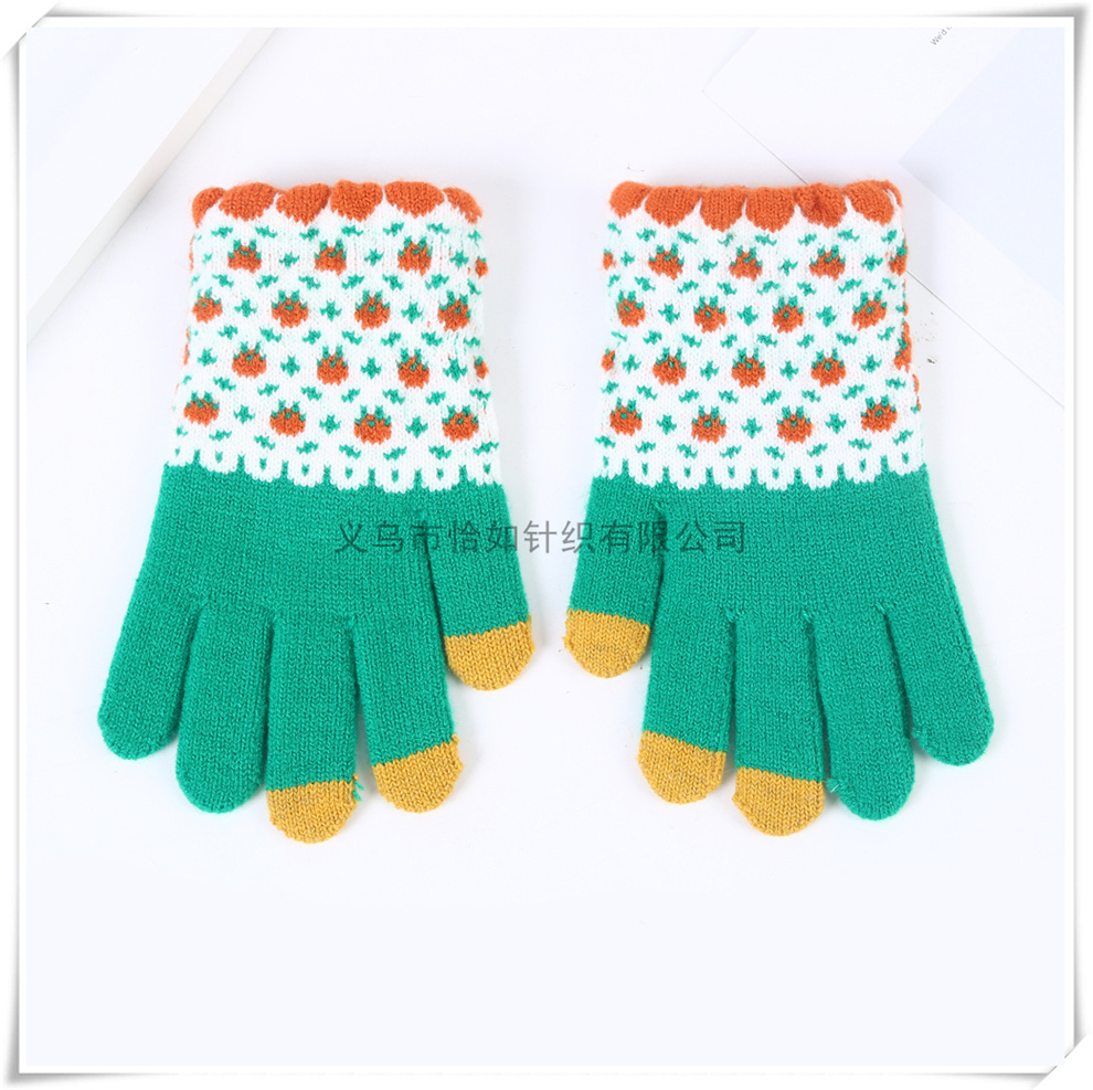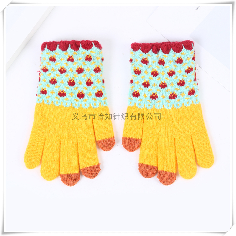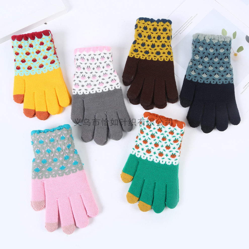 sweet floral pattern girls' work and study gloves touch screen thickened warm plush five-finger gloves 中文版