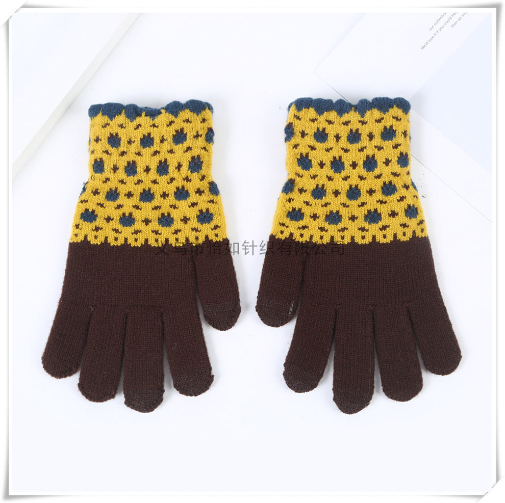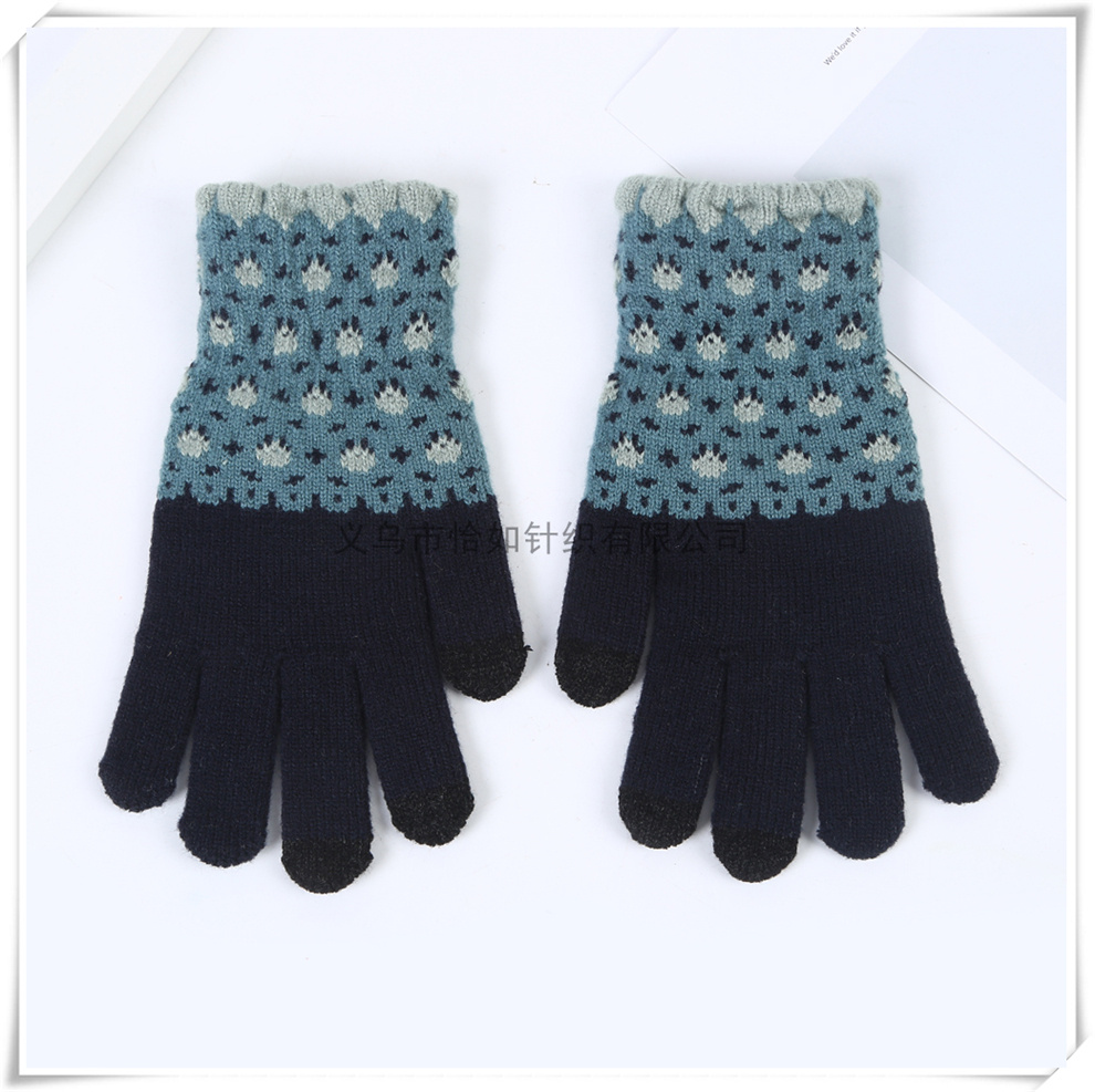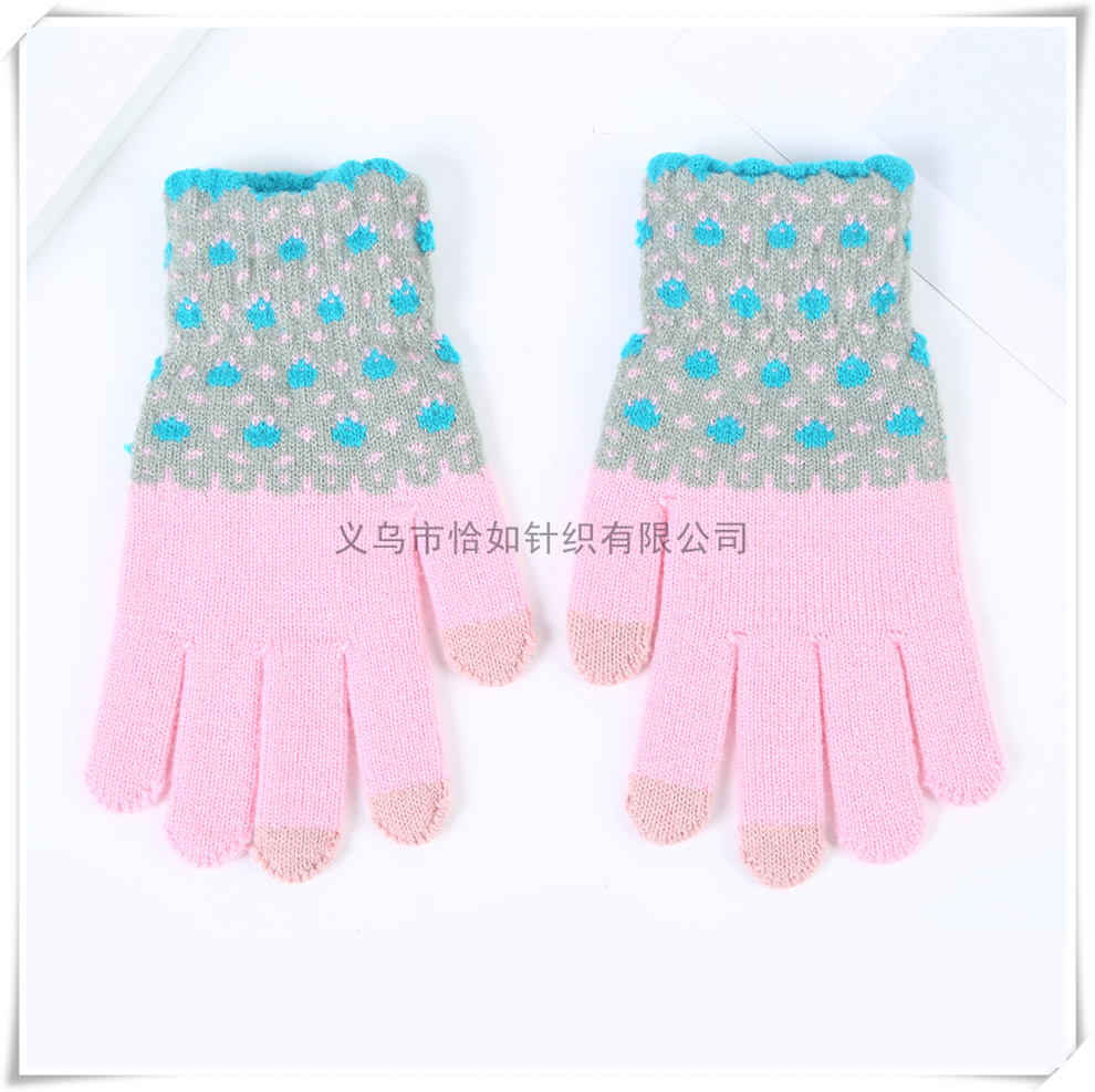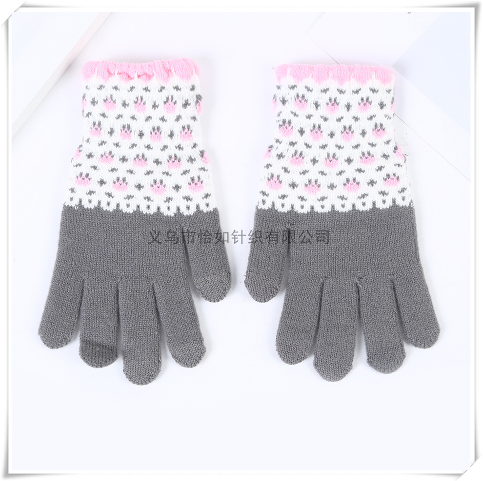 sweet floral pattern girls' work and study gloves touch screen thickened warm plush five-finger gloves 中文版