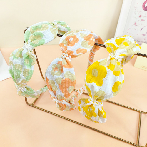 yellow printings pearl wavy hair band