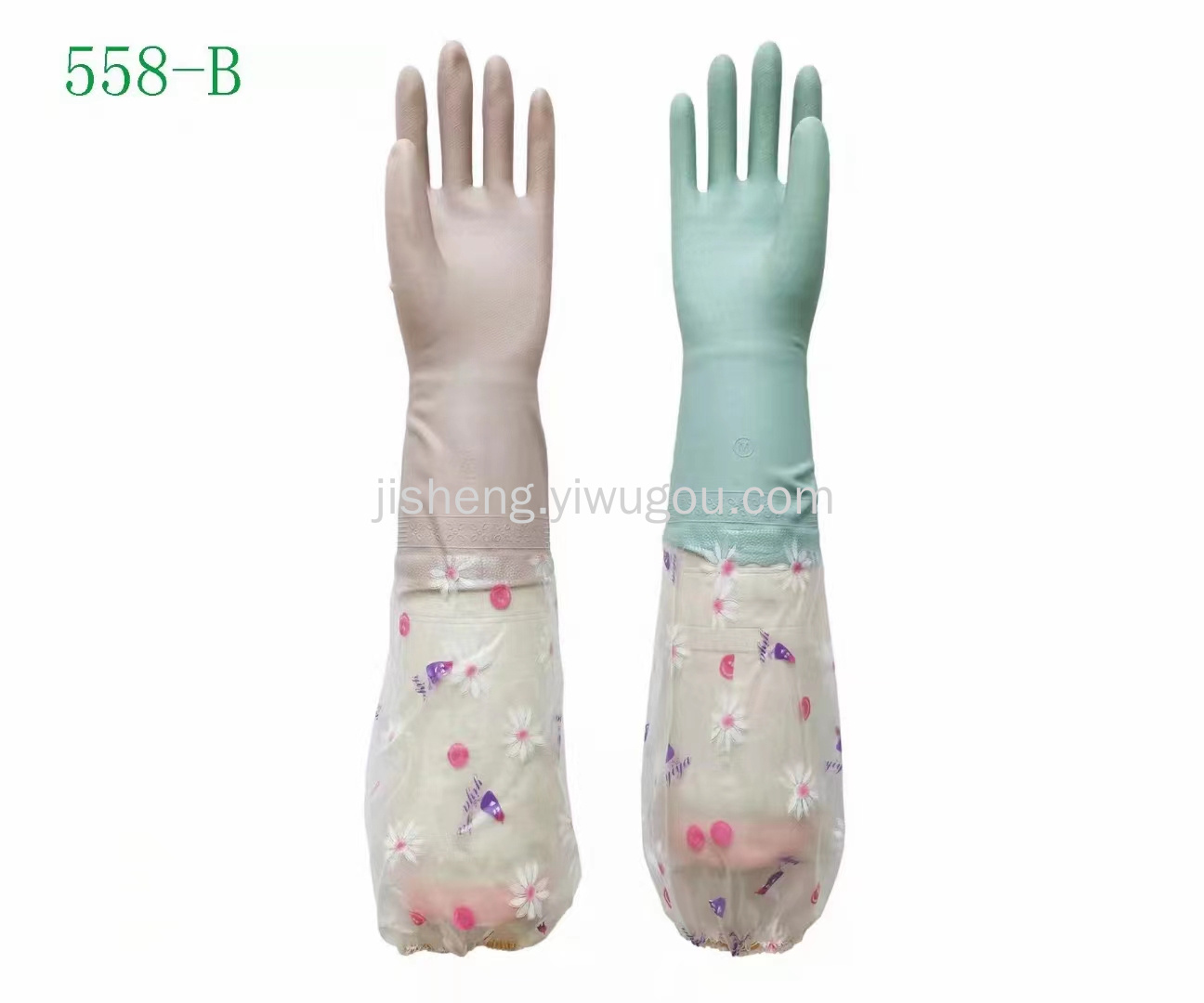 Yiya brand plus-insulated flocking washing gloves with elastic cuffs model 558-B