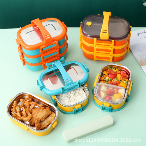 square lunch box stainless steel lunch box portable insulation student office worker plastic leak-proof multi-layer lunch box gift 中文版