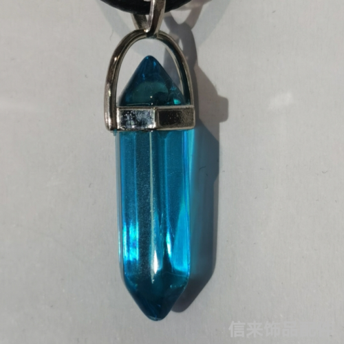 crystal glass natural stone pendant necklace pendant bullet hexagon prism two-pointed alloy hanging cap cross-border hot sale 中文版