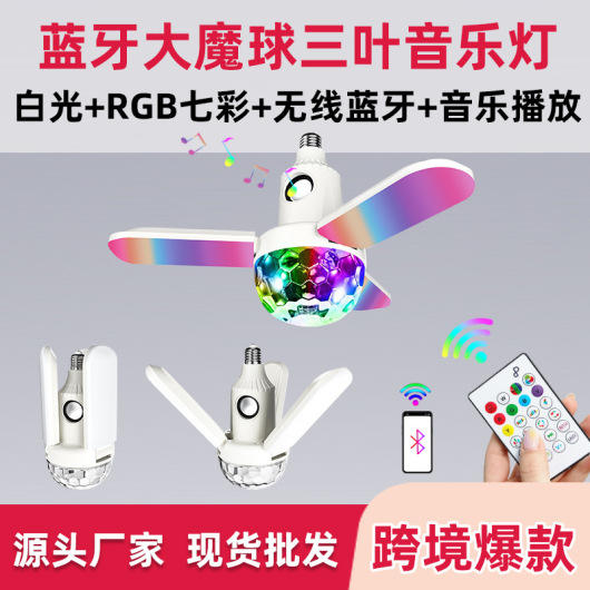 Cross-Border New Bluetooth Magic Ball Three-Leaf Music Light 40W White Light plus Colorful Smart LED Bluetooth Music