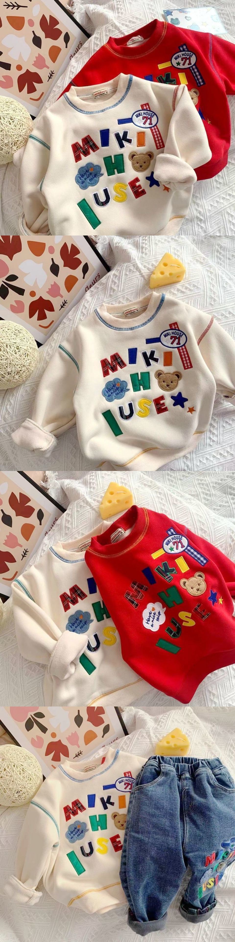 Embroidered Japanese Style Children's Baby Single-Layer Fleece-Lined Loose Top Foreign Trade Boys and Girls Brushed Hoody Autumn and Winter New Labeling