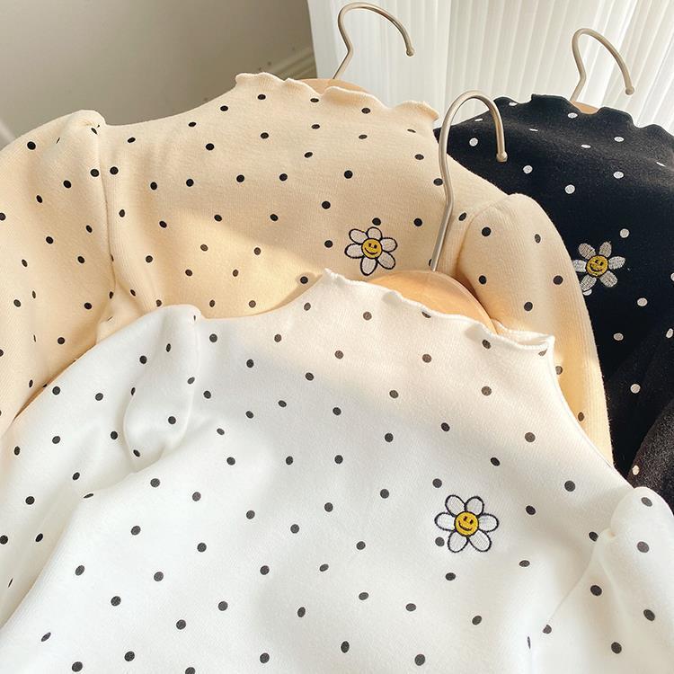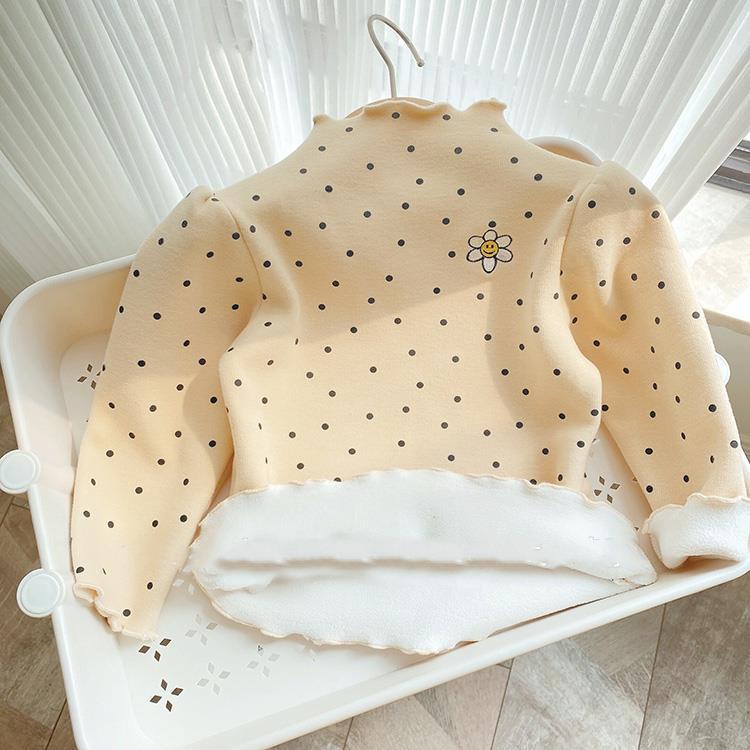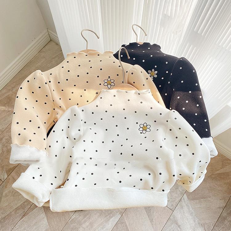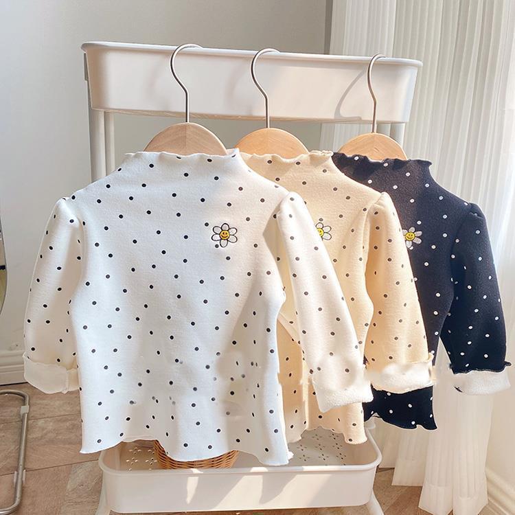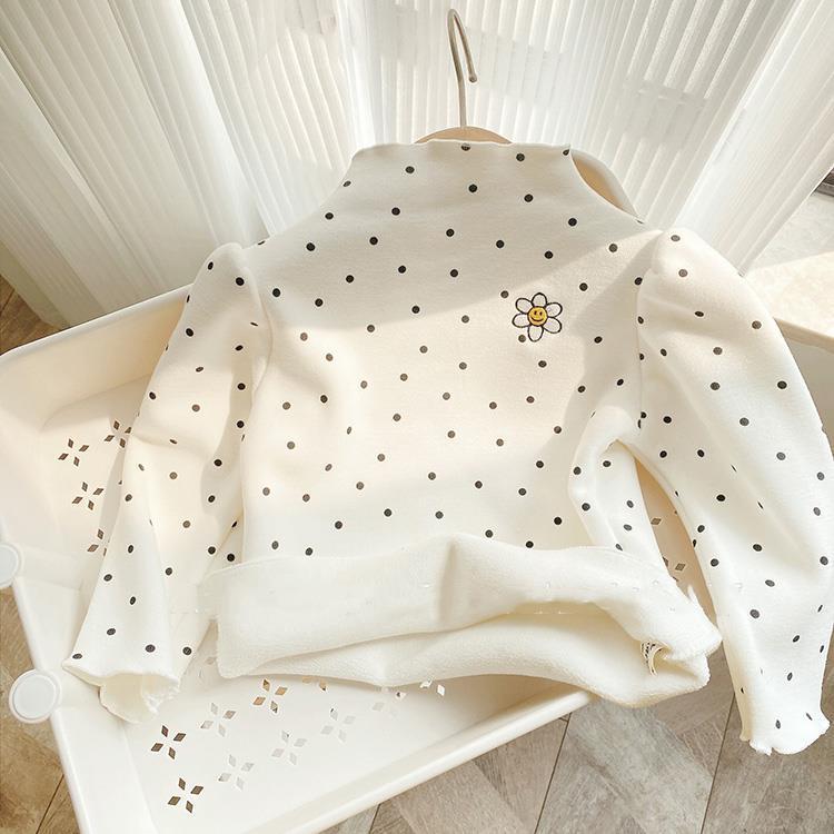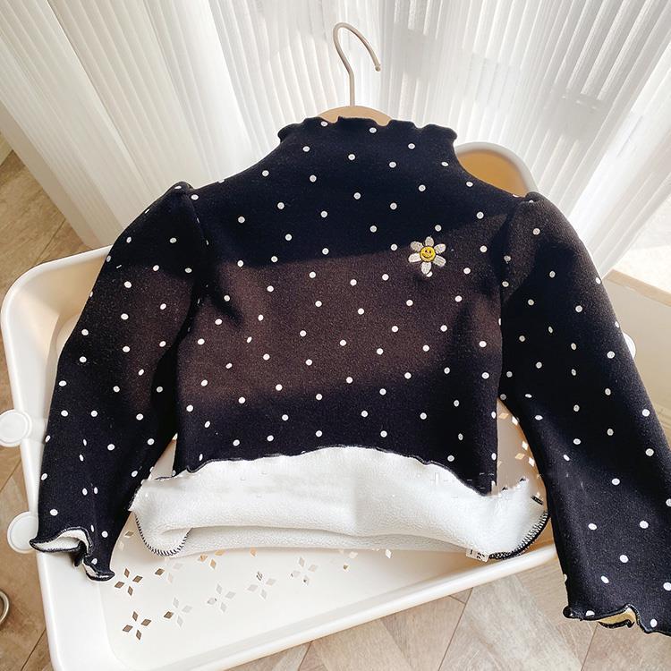 Girls' Autumn and Winter Fleece-Lined Undershirt Children's Half Turtleneck Single-Layer Fleece-Lined Thick T-shirt Baby Comfortable Warm Top 中文版