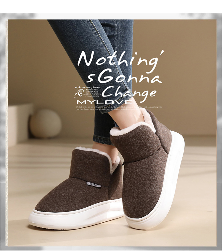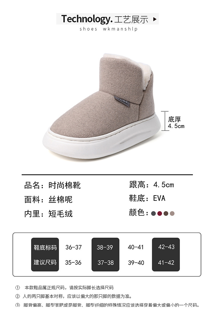 Winter Men's and Women's Plush Shoes Bag Heel Thick Bottom Thickened plus Velvet Warm Shoes New Casual Home Student Cotton Slippers 中文版