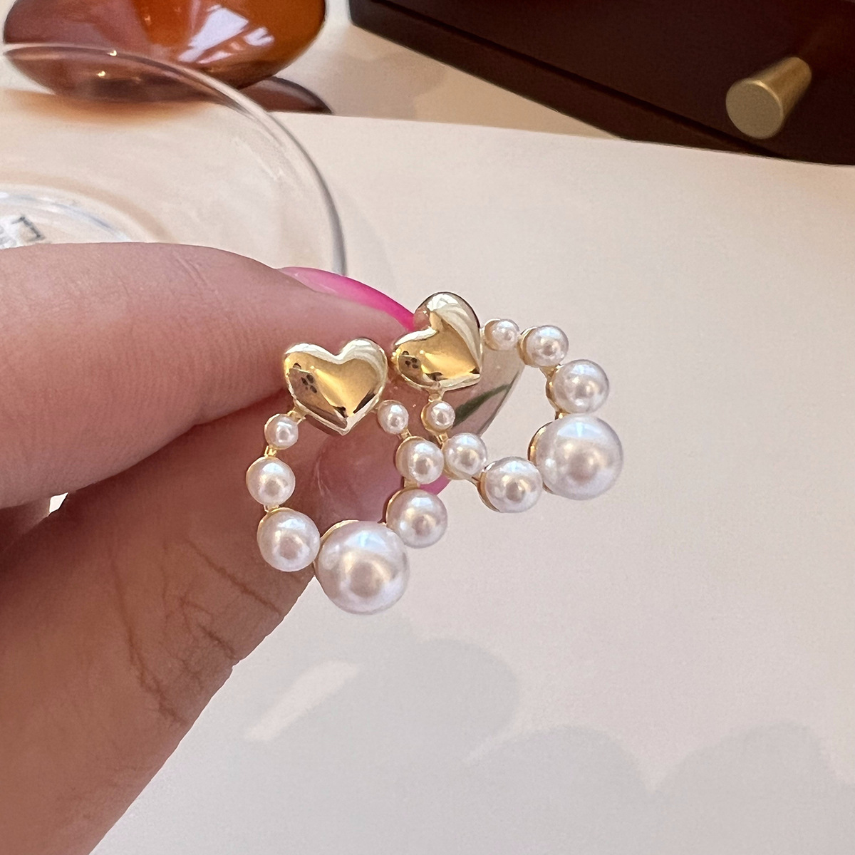 pearl ring love heart stud earrings