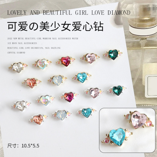 new nail beauty alloy cute beautiful girl love heart rhinestone jewelry colorful love heart bow tie nail sticker zs-0896 中文版