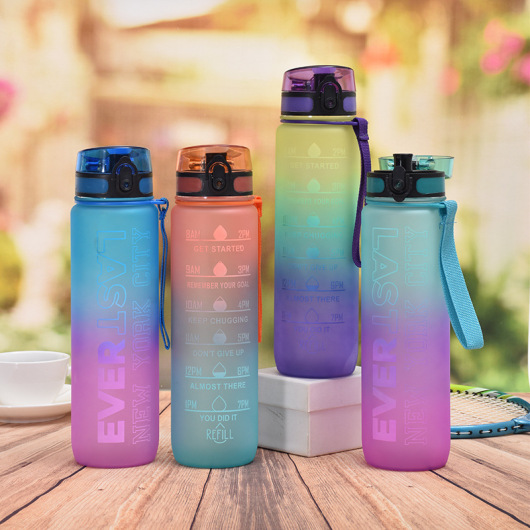 Cross-Border Hot Selling Frosted Gradient Color Large Capacity Straight Drink Cup with Scale Outdoor Portable Space Time Scale Cup