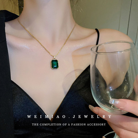 Emerald Diamond Square Necklace Light Luxury and Simplicity Niche High Sense Temperament Clavicle Chain New Pendant Necklace