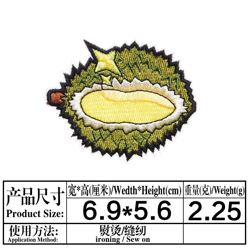 布贴卡通个性水果刺绣补丁贴榴莲菠萝图案diy衣服背胶