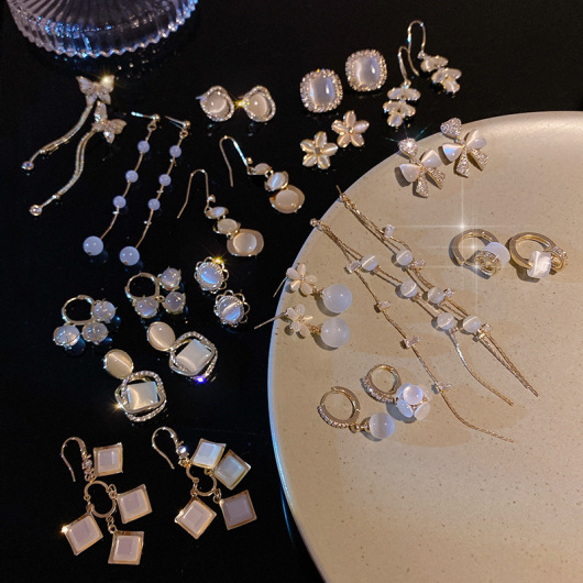 Sterling Silver Needle Retro Cymophanite Earrings for Women Korean Graceful Geometric Square Eardrops High Quality Earrings Wholesale for Women