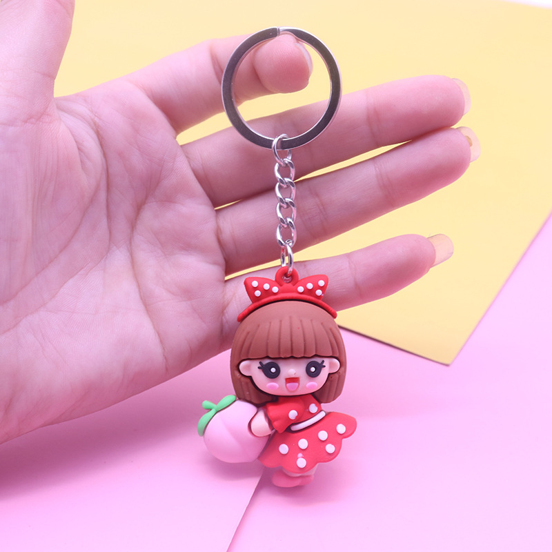 red peach holding girl