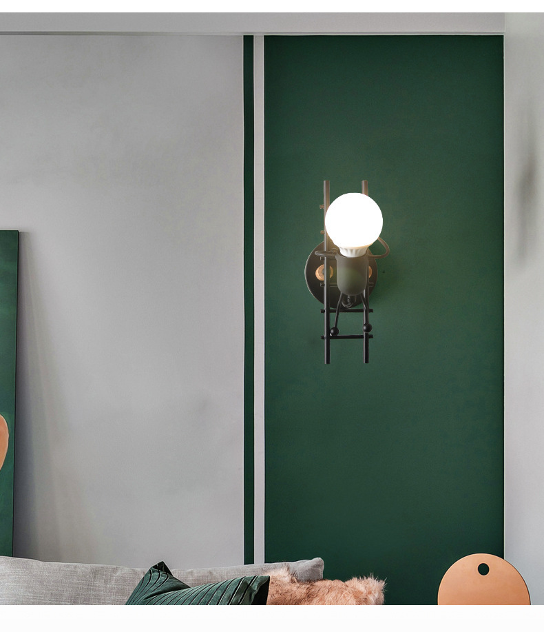children's room bedside lamp creative personality simple bedroom stair climbing wall hanging decoration light little man iron cartoon wall lamp 中文版