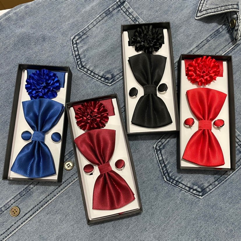 bow tie boxed four-piece corsage cuff square scarf tie wedding groom groomsman formal shirt business bow 中文版