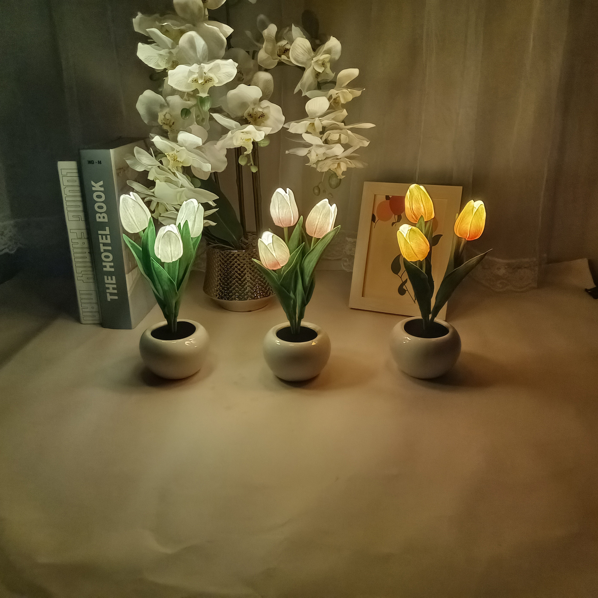 1. LED Flower Pot Plant Features: Combining LED solid-state light sources with high-fidelity plant simulations, our unique design gives the simulated flower scenes new functionalities with light sources, endowing the simulated flowers with new vitality. Our LED flowers are not only elegant pot plants with the spirit and natural aroma of fresh flowers; at night, they also serve as soft and comfortable flower lampshades, adding a touch of warmth and romance.