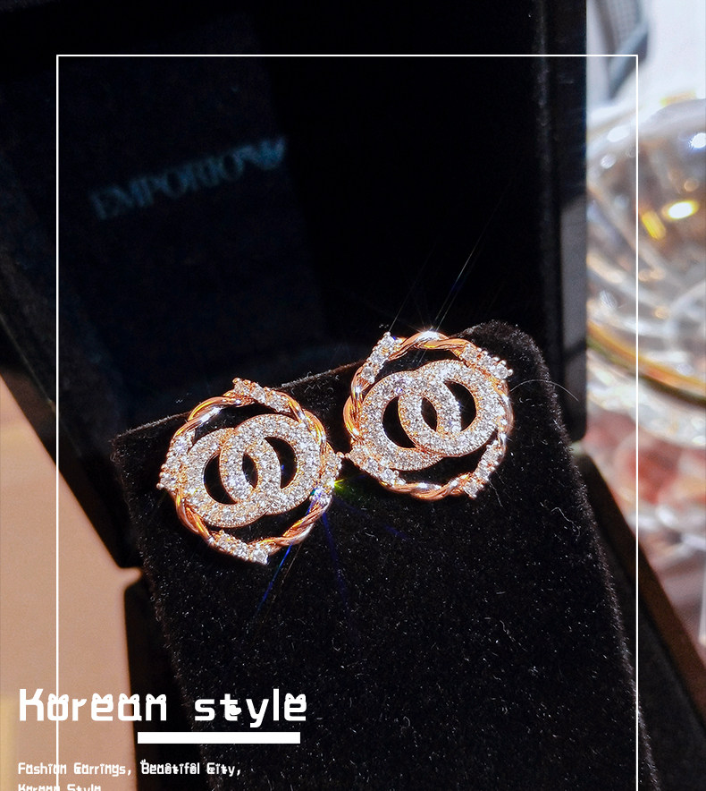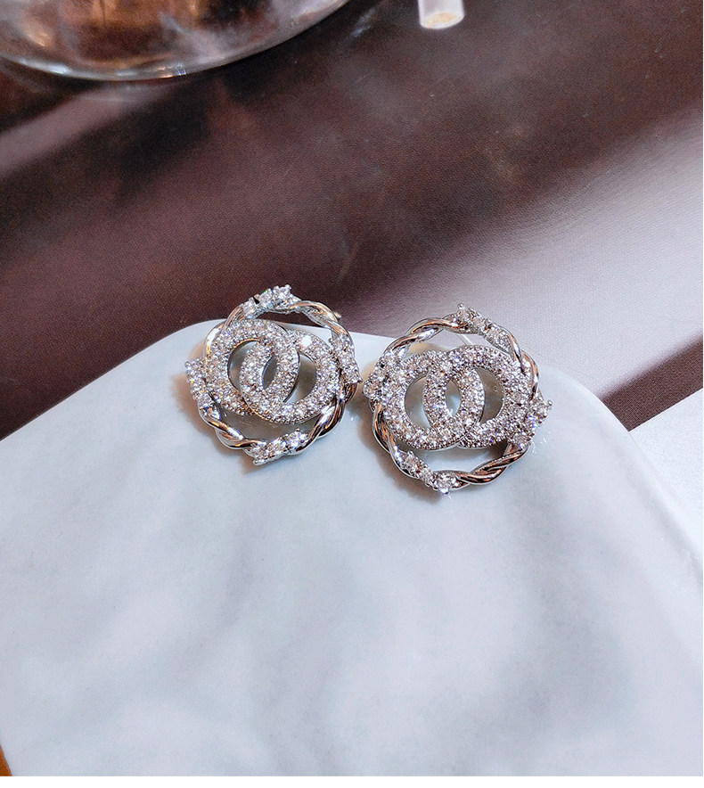 Classic Style Double C Stud Earrings Female Silver Beautiful Fashion Earrings Circle Simple Cold Style Earrings New Fashion