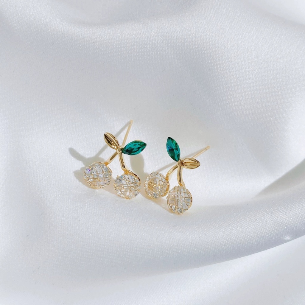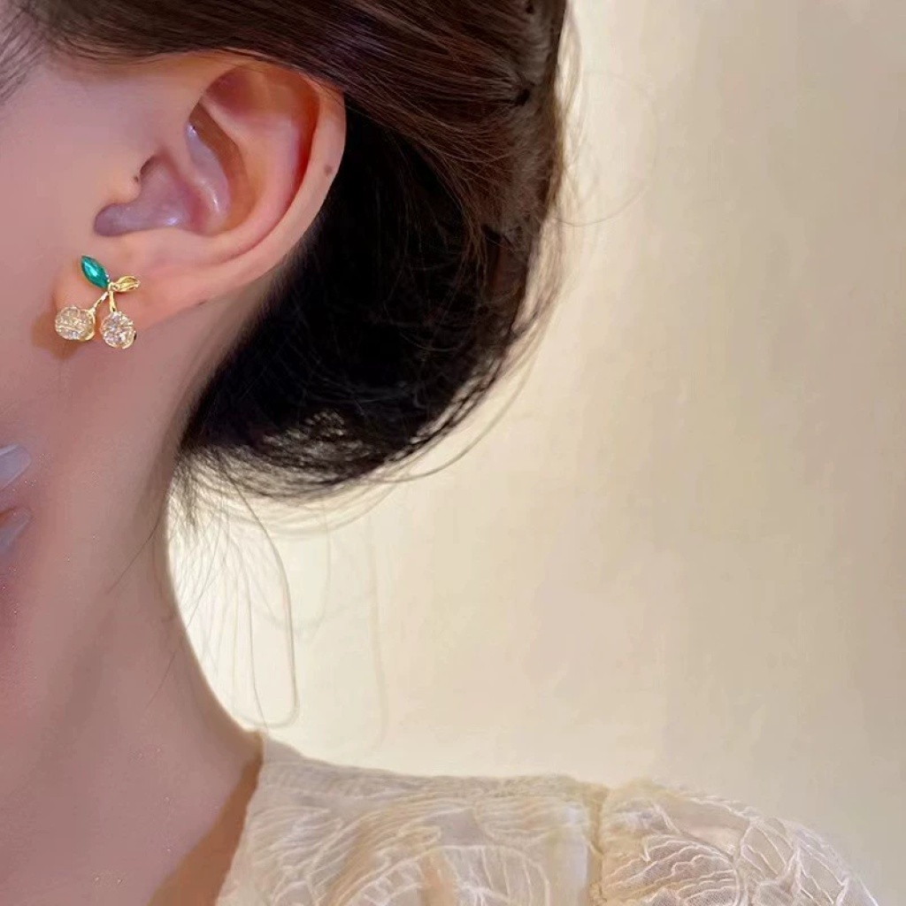 2022 new 925 silver needle cherry exquisite stud earrings pastoral style fresh personality fashion niche all-match earrings