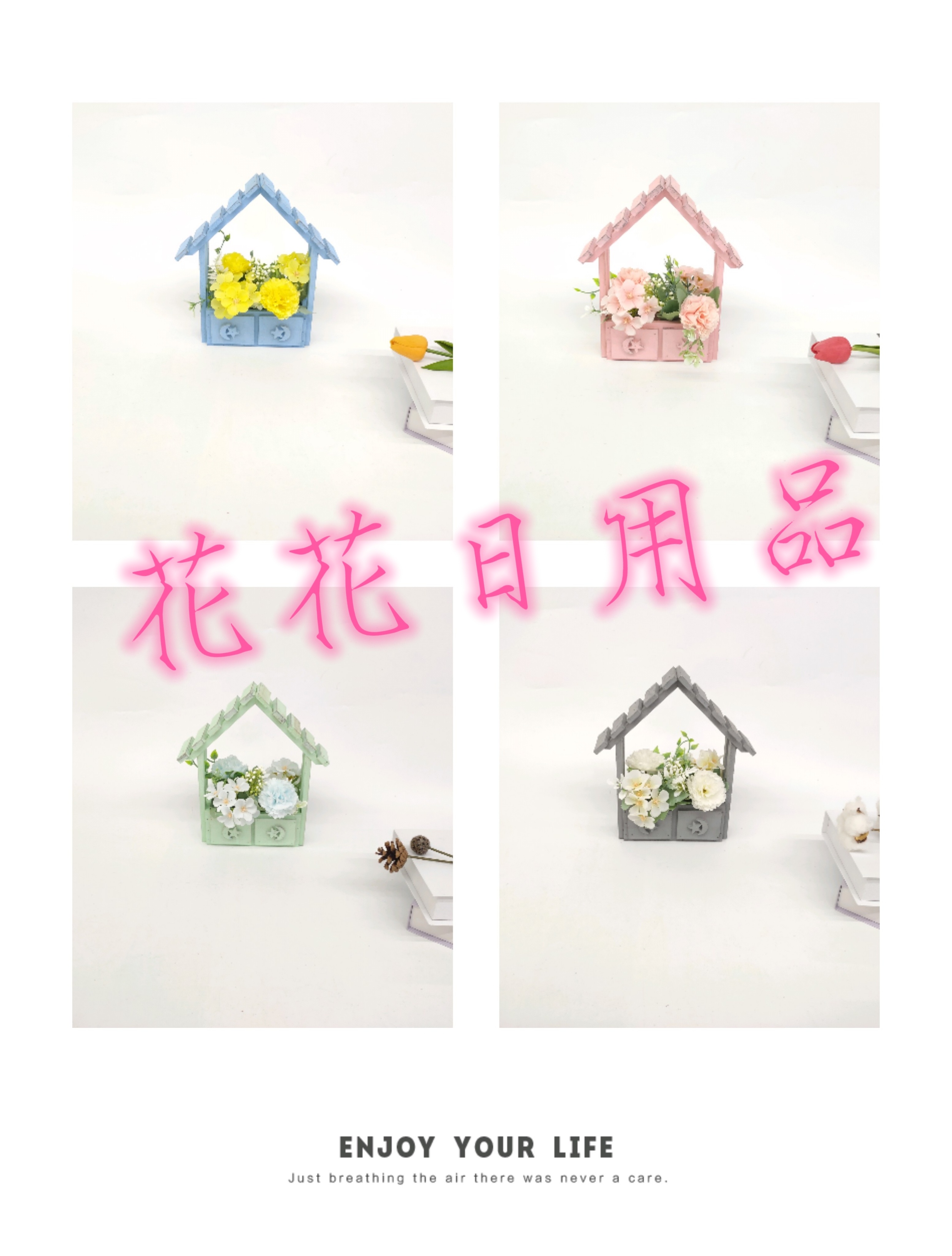 Artificial Flower Artificial Flower Bonsai Wooden Frame House Small Flower Daily Ornaments