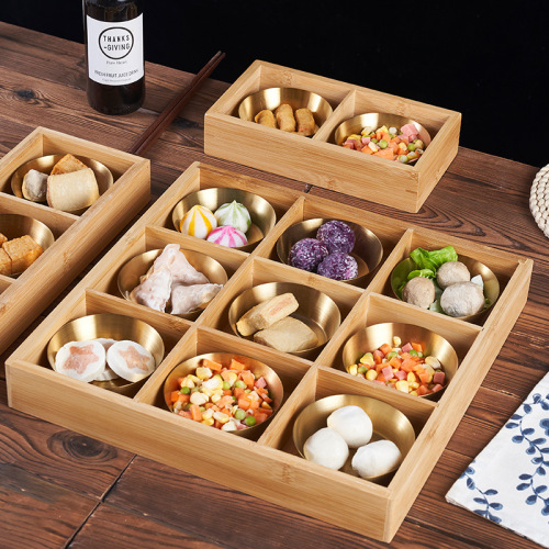 creative hot pot jiugongge tableware hot pot restaurant roast meat shop side dish special bamboo wood compartment tray snack plate
