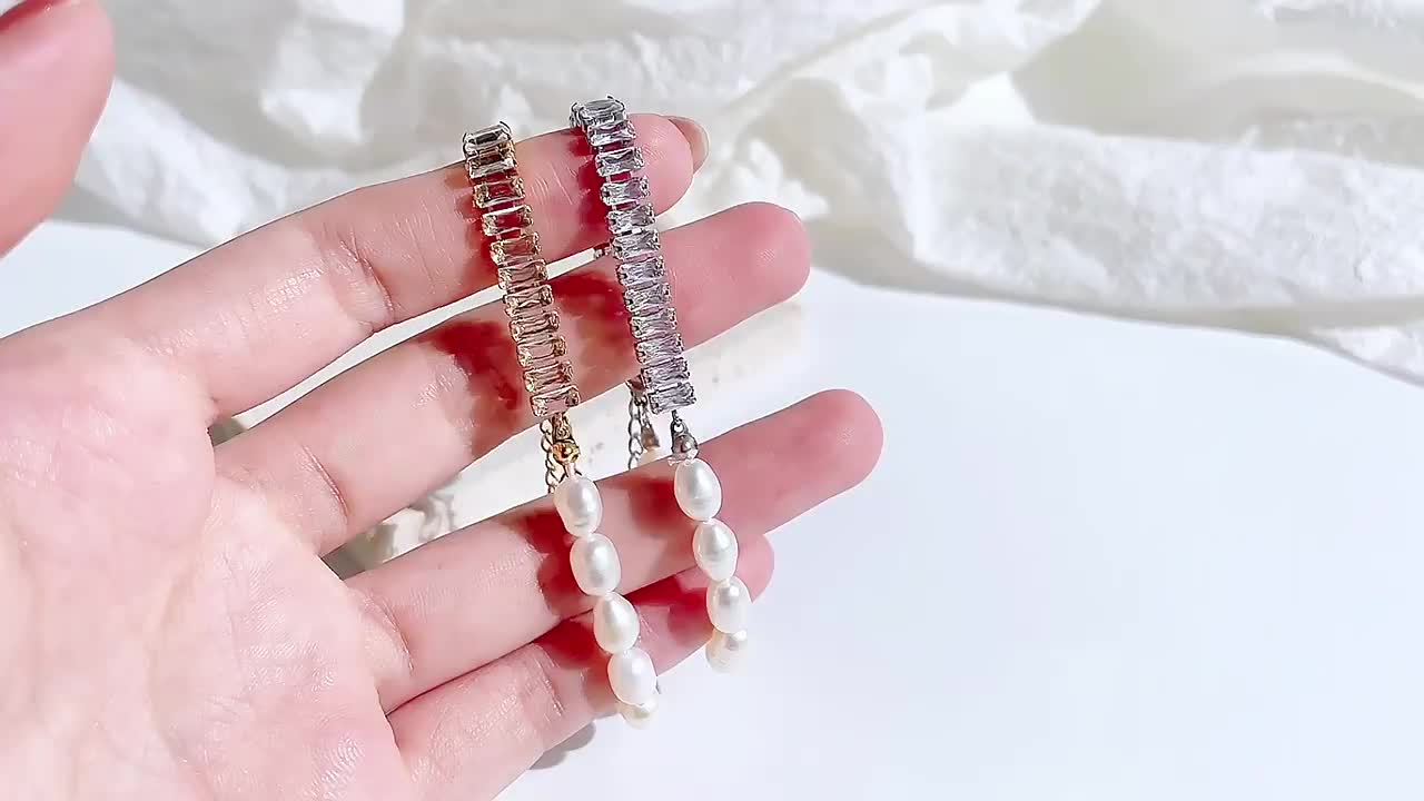 Live Supply Chain European and American Cold Style Pearl Bracelet Girls Niche French Entry Lux Zircon Titanium Ornament Wholesale