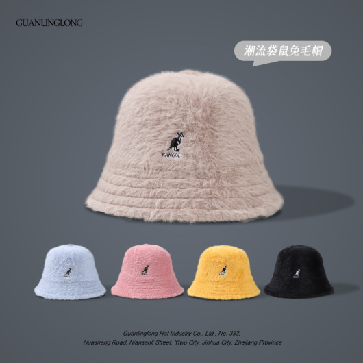 Kangol Kangaroo Dome Rabbit Fur Bucket Hat Ins Hyuna Same Style Autumn and Winter Couple Rabbit Fur Bucket Hat