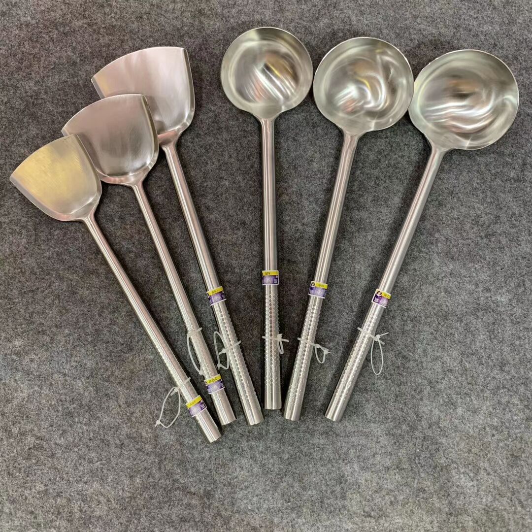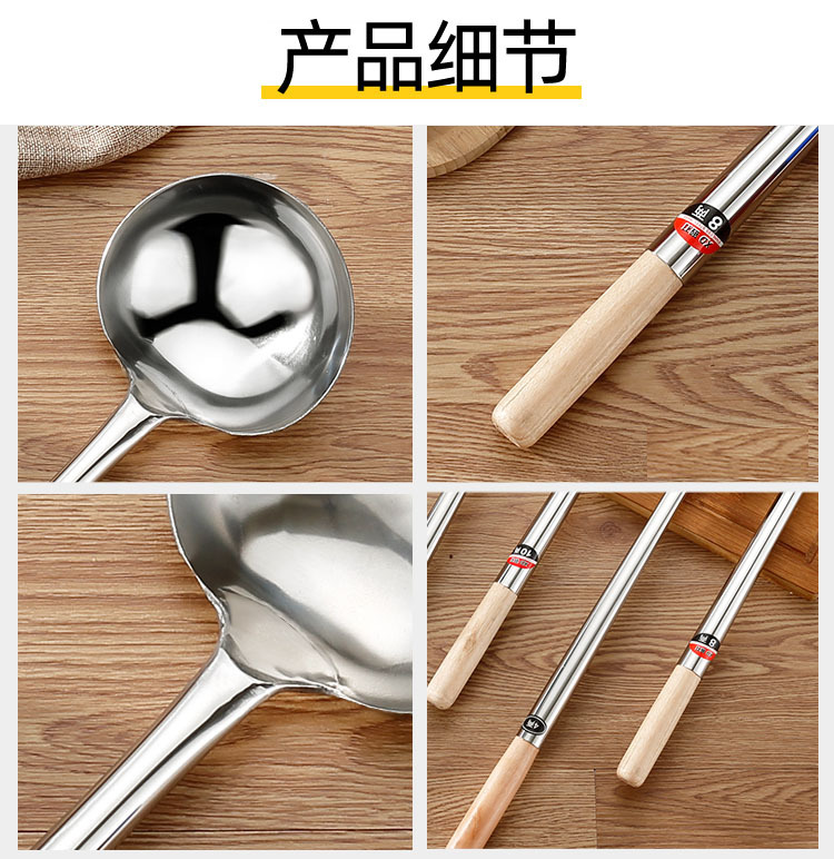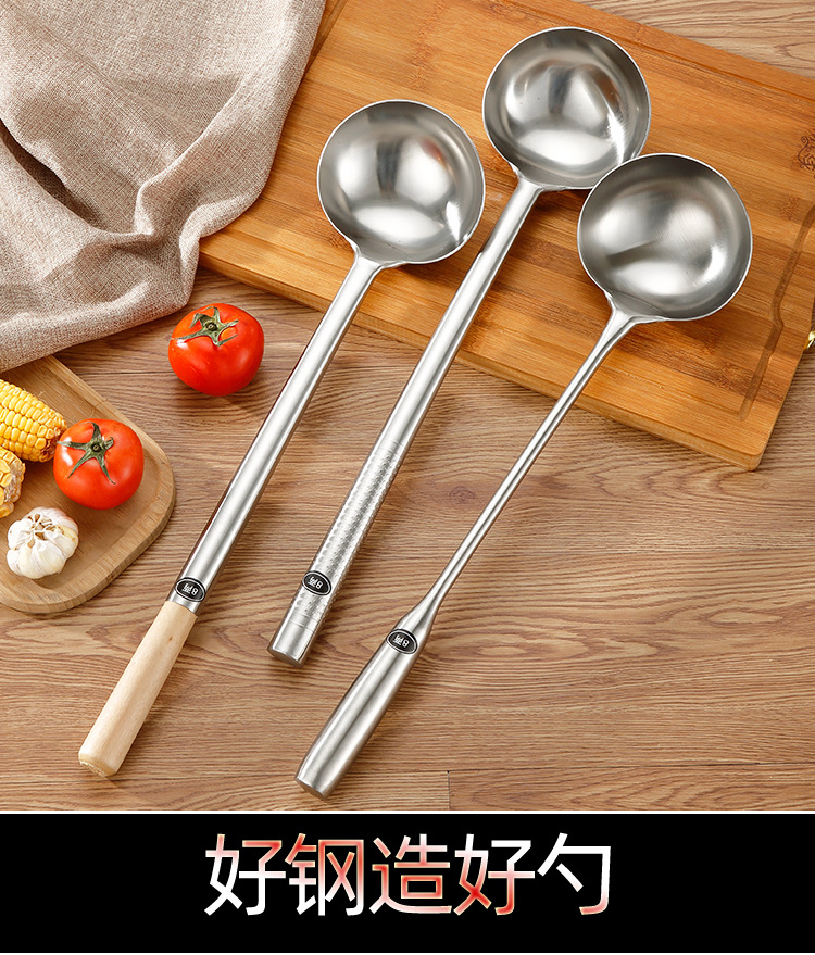 wholesale spatula stainless steel commercial chef use spatula long handle soup spoon thickened cooking spoon hand spoon serving spoon 中文版