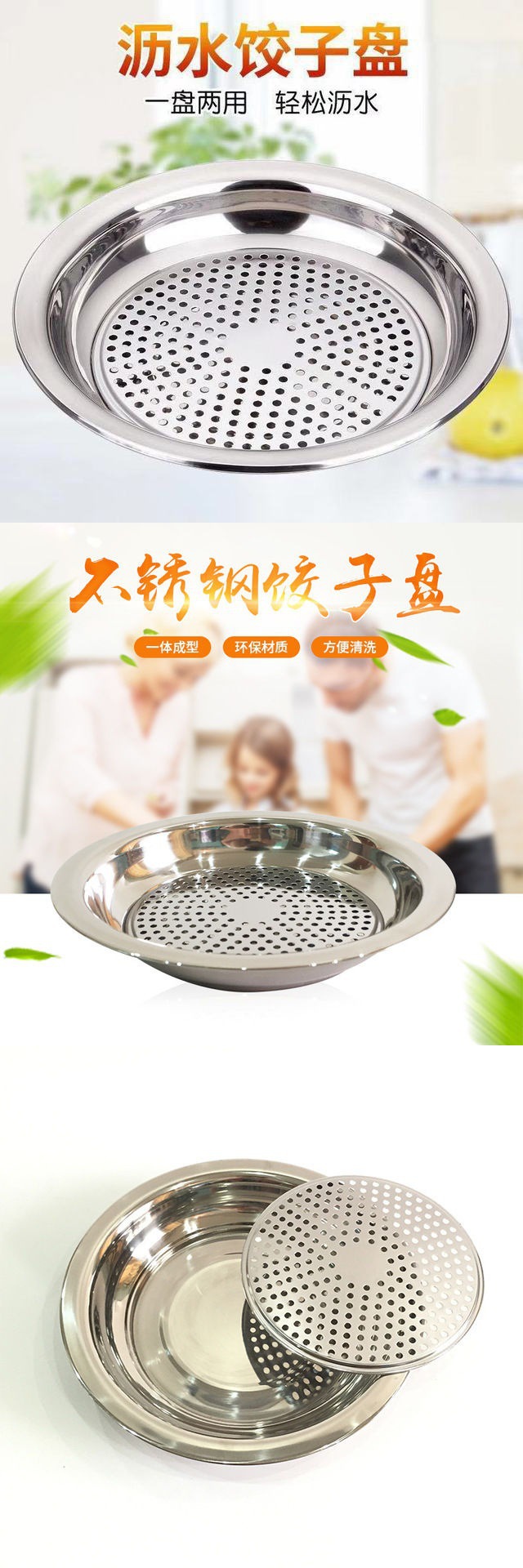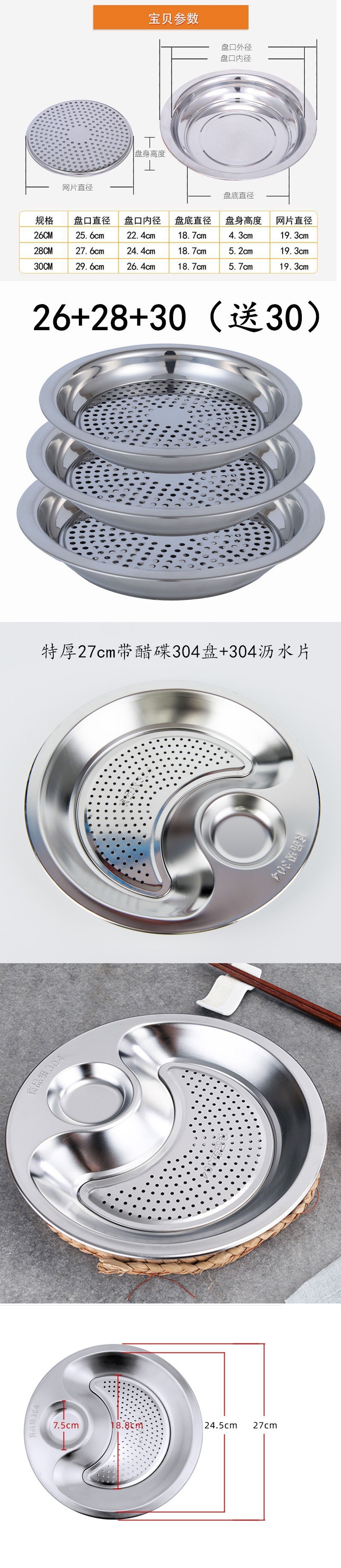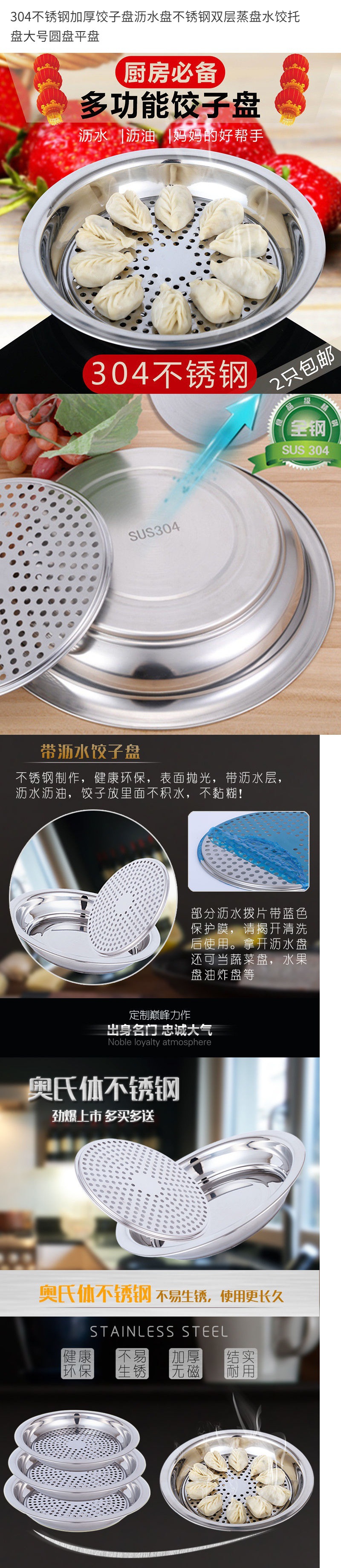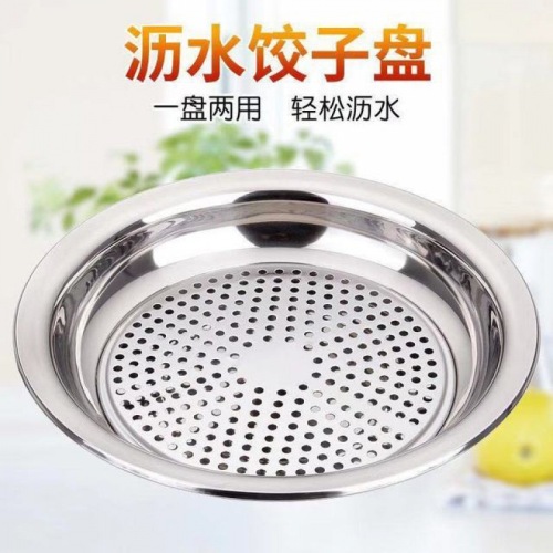 steaming plate 304 stainless steel thickened dumpling draining stainless steel double layer dumpling tray large round plate flat plate simple 中文版