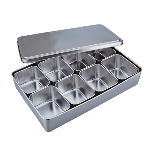Stainless Steel Seasoning Box Multi-Grid Kitchen Seasoning Jar Japanese Seasoning Box Commercial Household Moisture-Proof Food Retention Sample Box 中文版