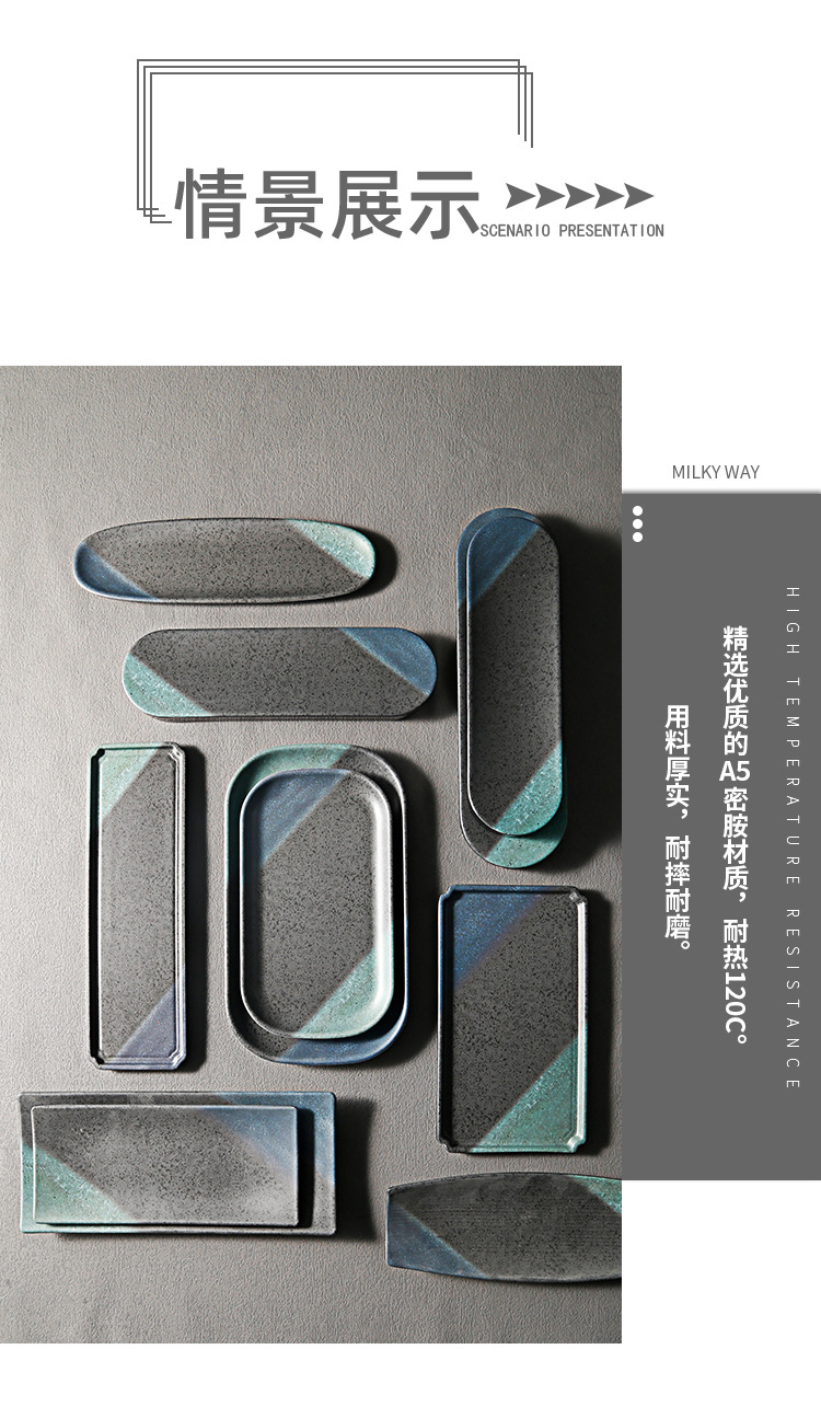 melamine rectangular plate sushi restaurant plate commercial restaurant special plastic imitation porcelain hot pot restaurant japanese barbecue plate 中文版