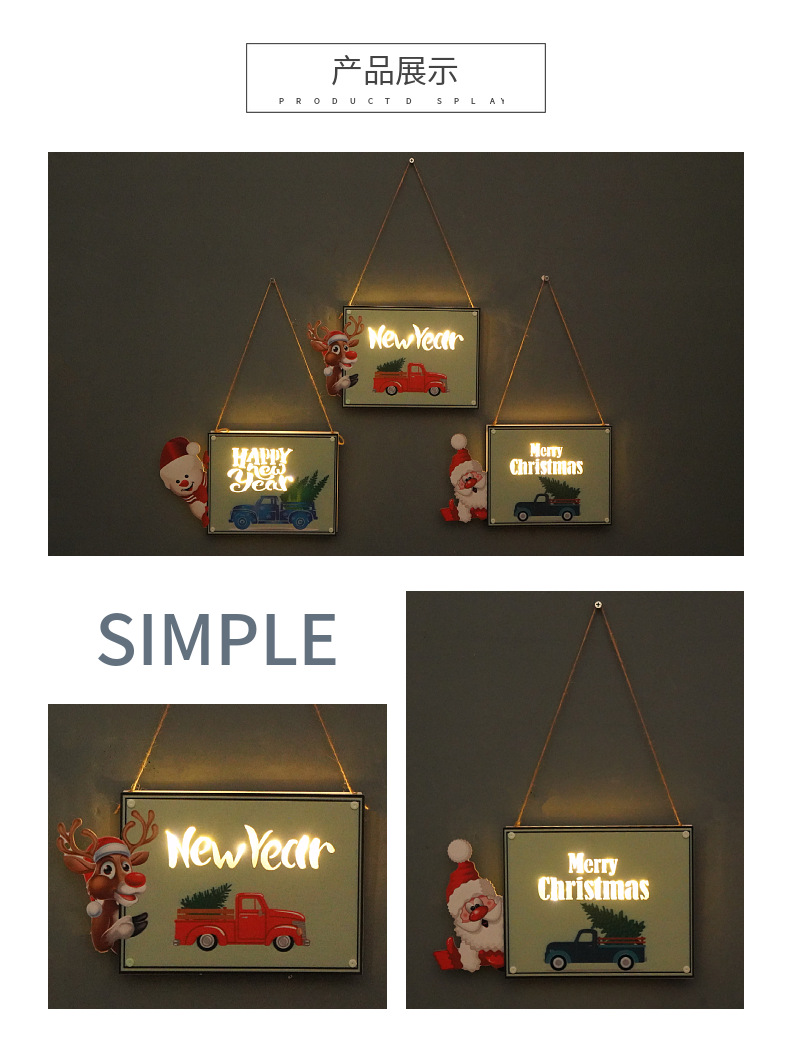 cross-border new arrival christmas wooden hanging led luminous decorative door plate wall decoration pendant pattern words can be modified 中文版