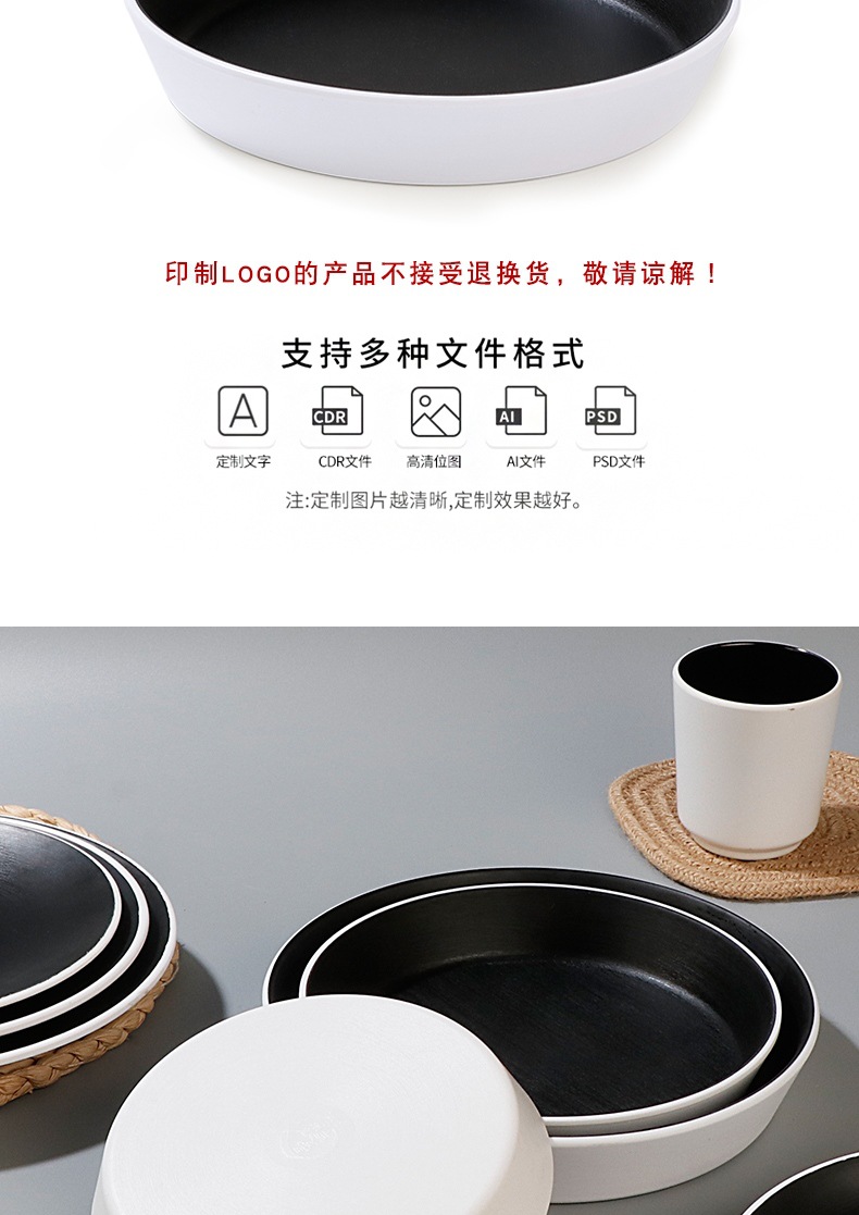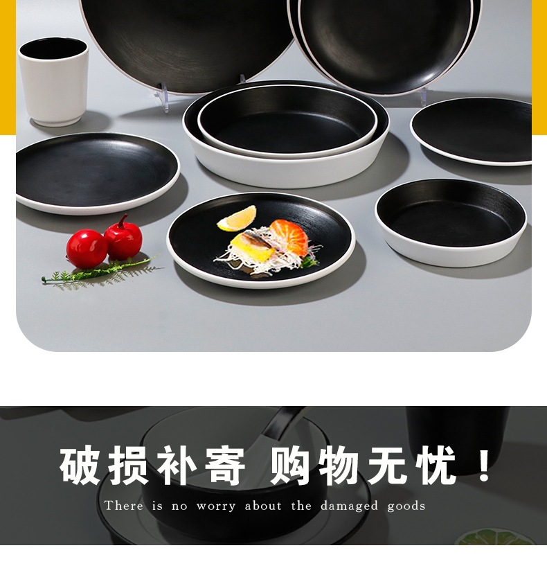 melamine commercial round plate flat plate imitation porcelain restaurant hotel japanese style dinner plate round dinner plate high side deep mouth deepening plate 中文版