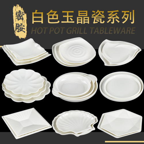 white melamine plate jade crystal porcelain buffet fast food plate square plate special tableware for hot pot restaurant dishes