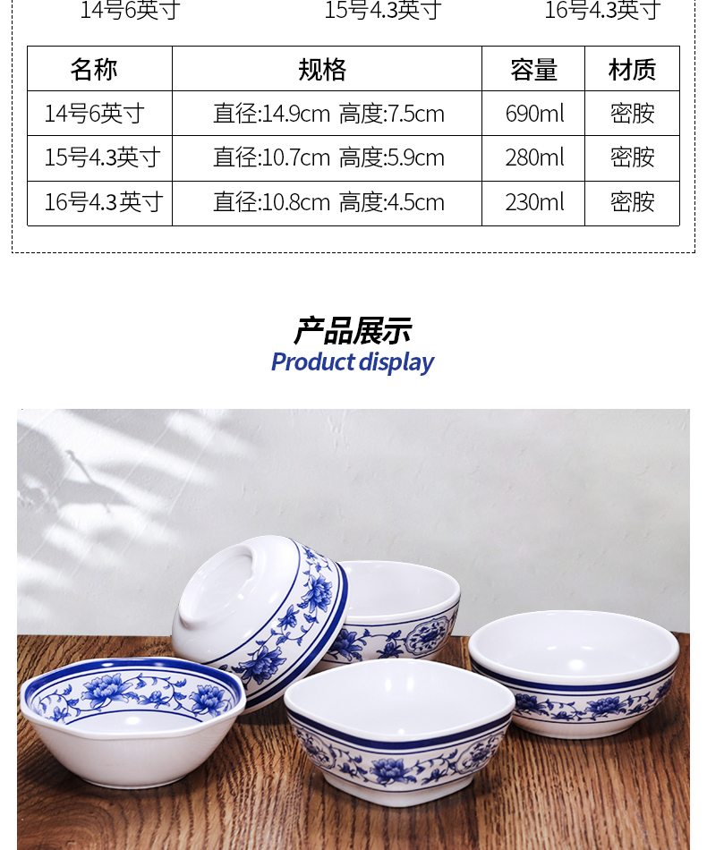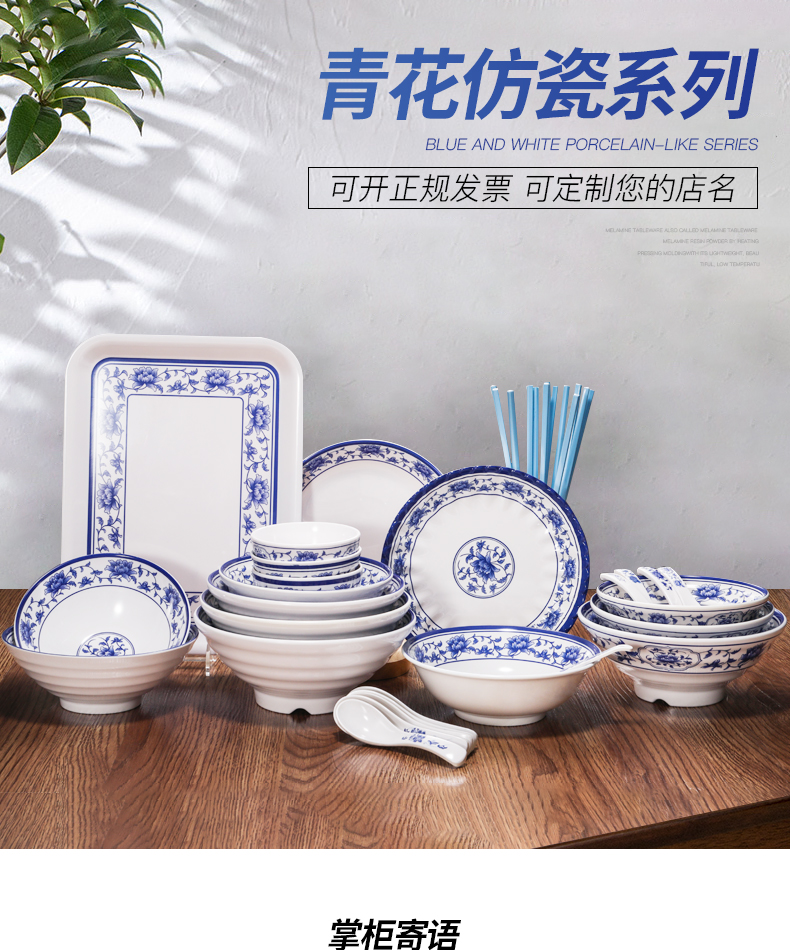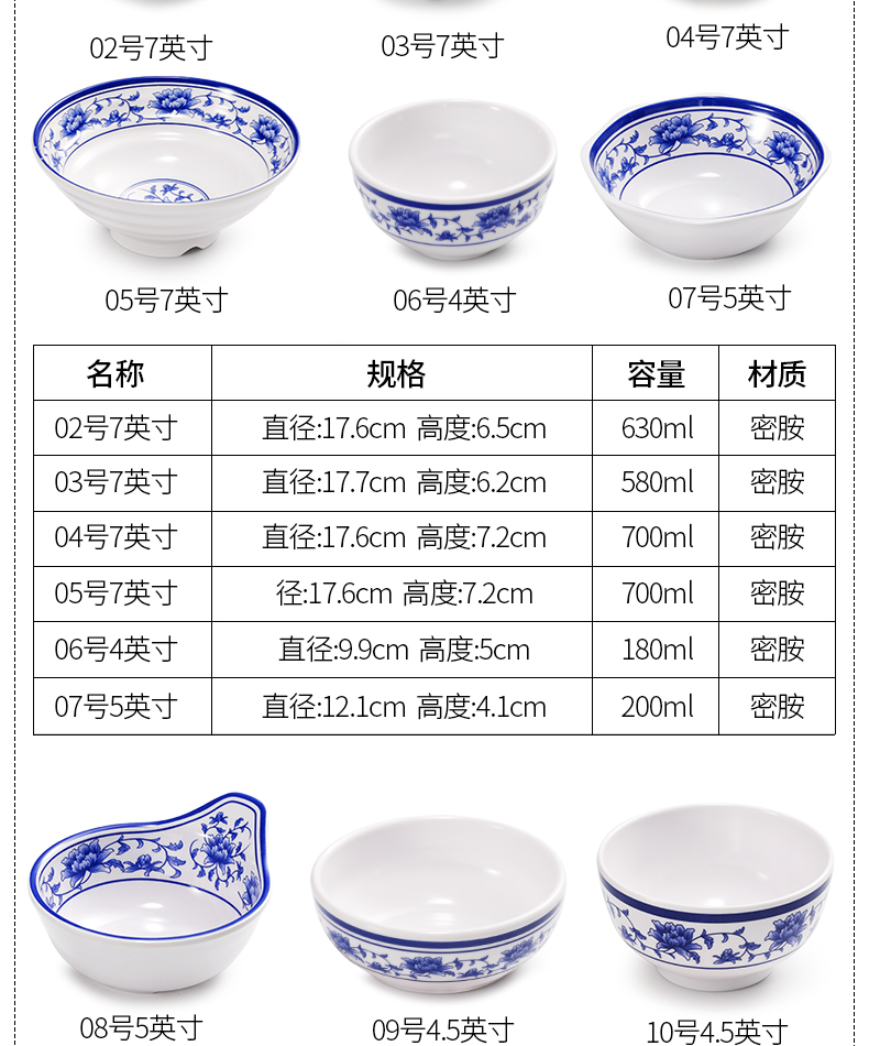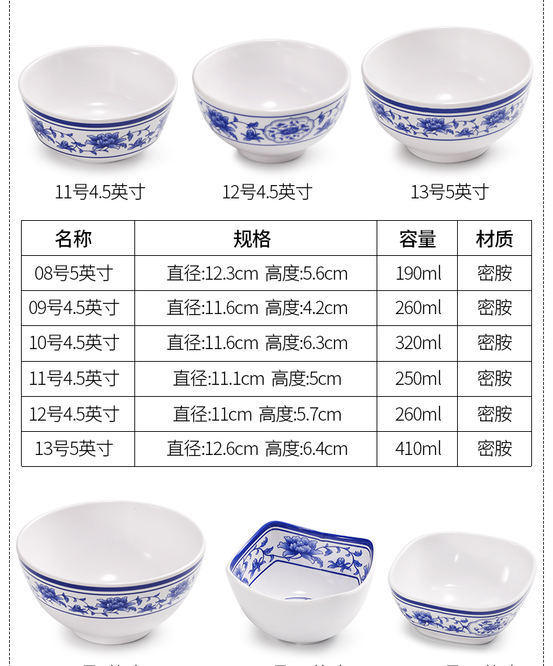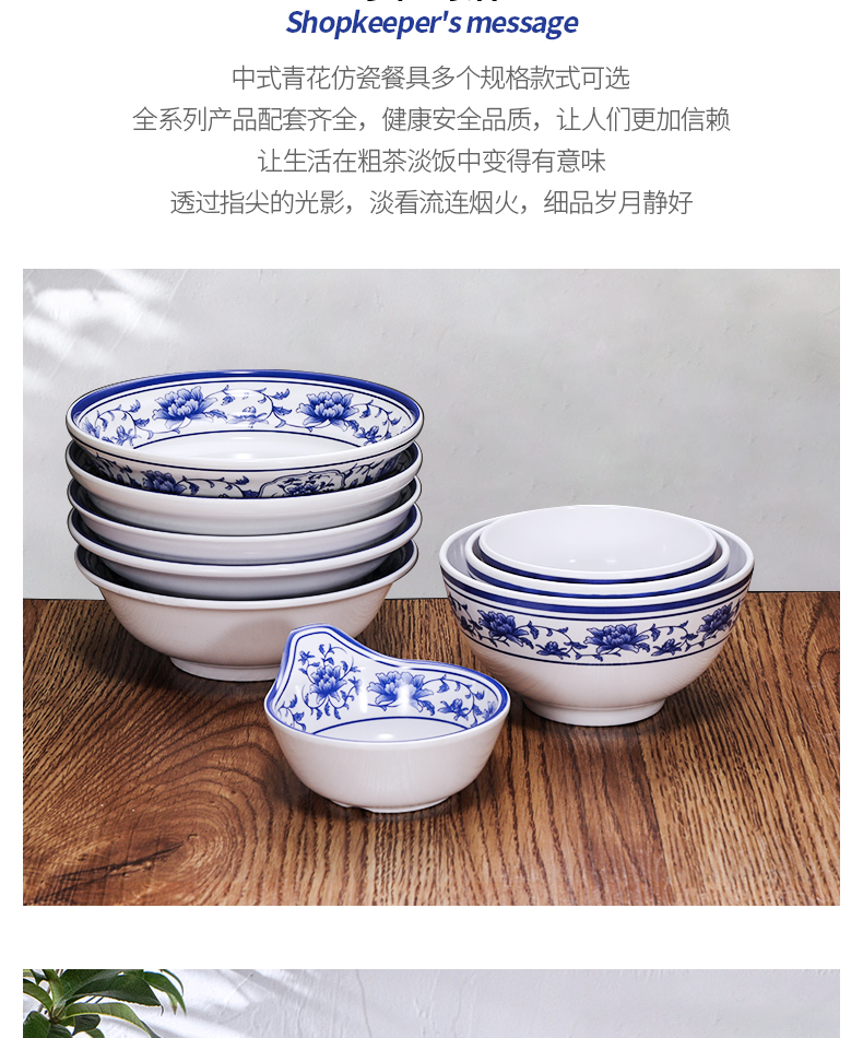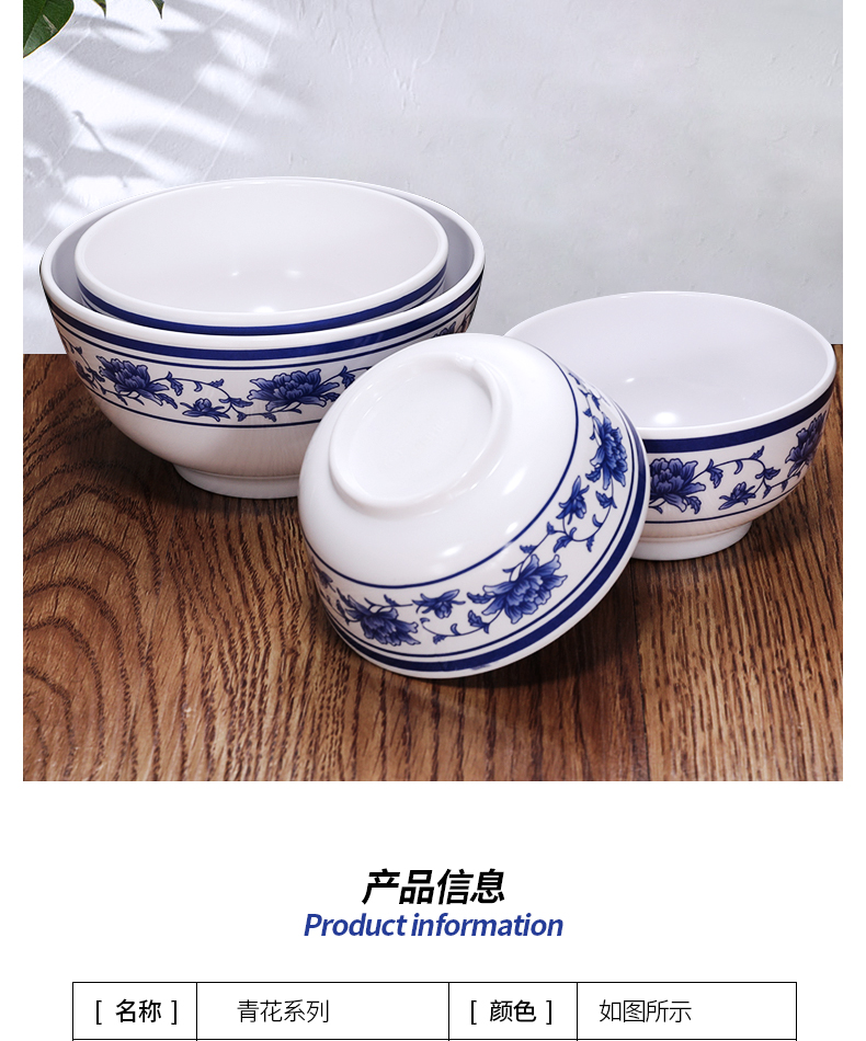melamine blue and white porcelain bowl rice bowl small bowl plastic small soup bowl porringer imitation porcelain tableware bowl chopsticks hot pot restaurant small bowl commercial 中文版