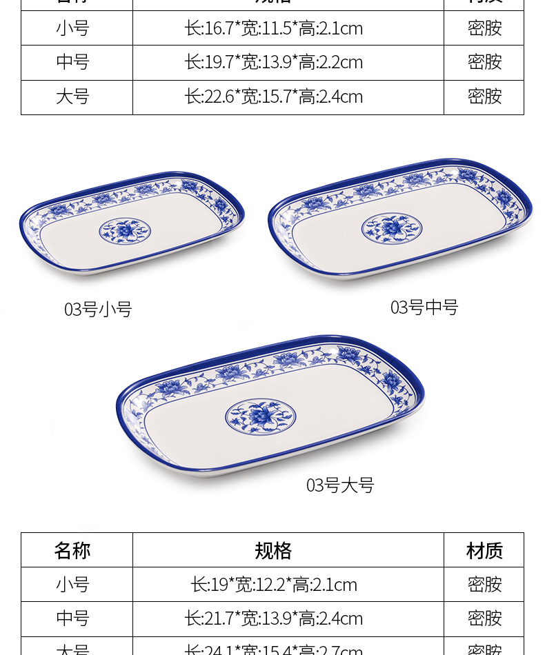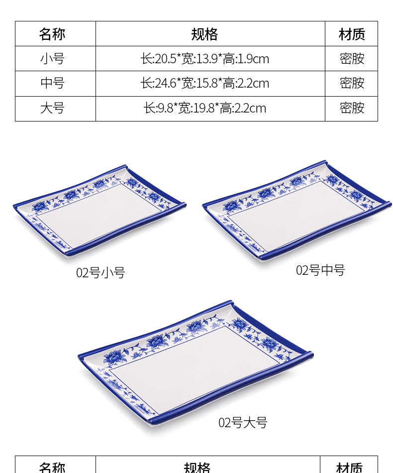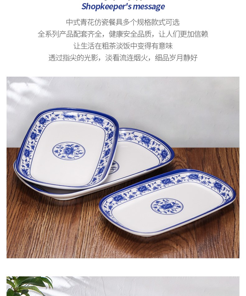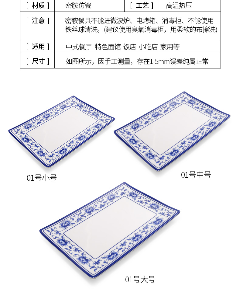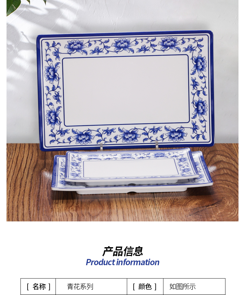 melamine plate blue and white porcelain plastic rectangular rice noodles plate dinner plate imitation porcelain tableware sushi plate cold dish commercial use 中文版
