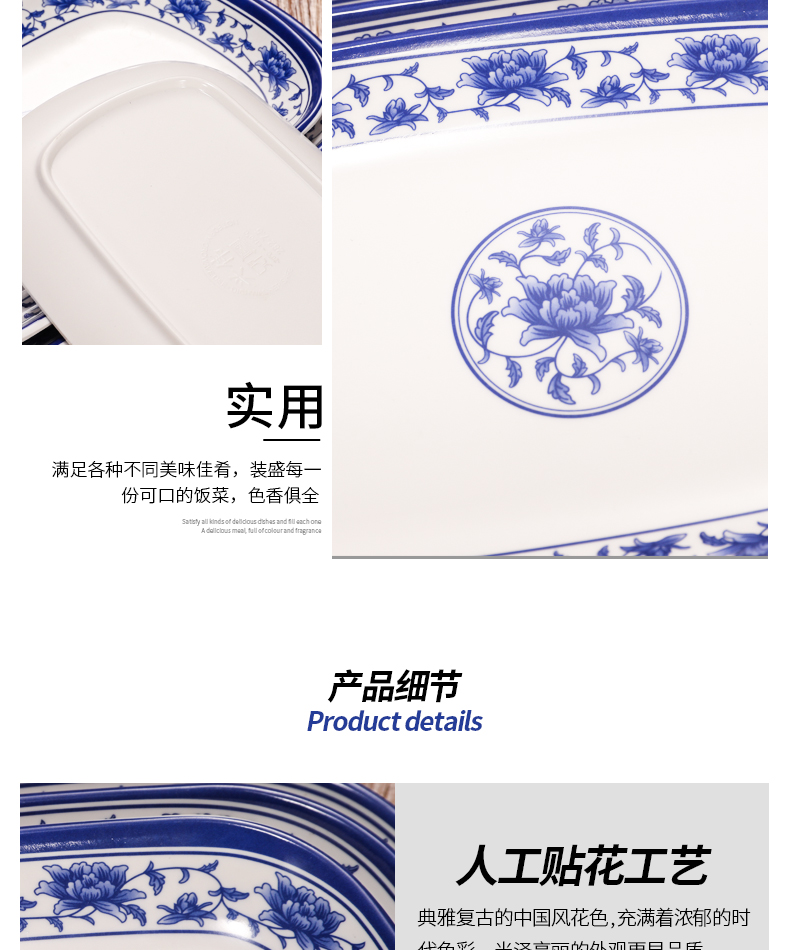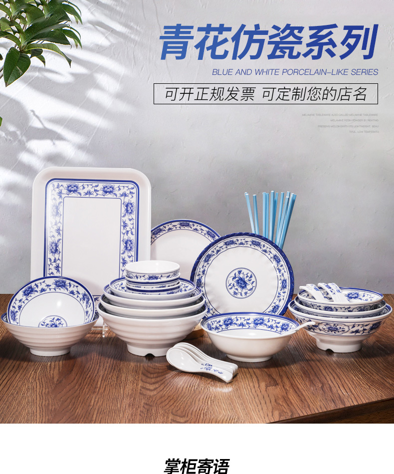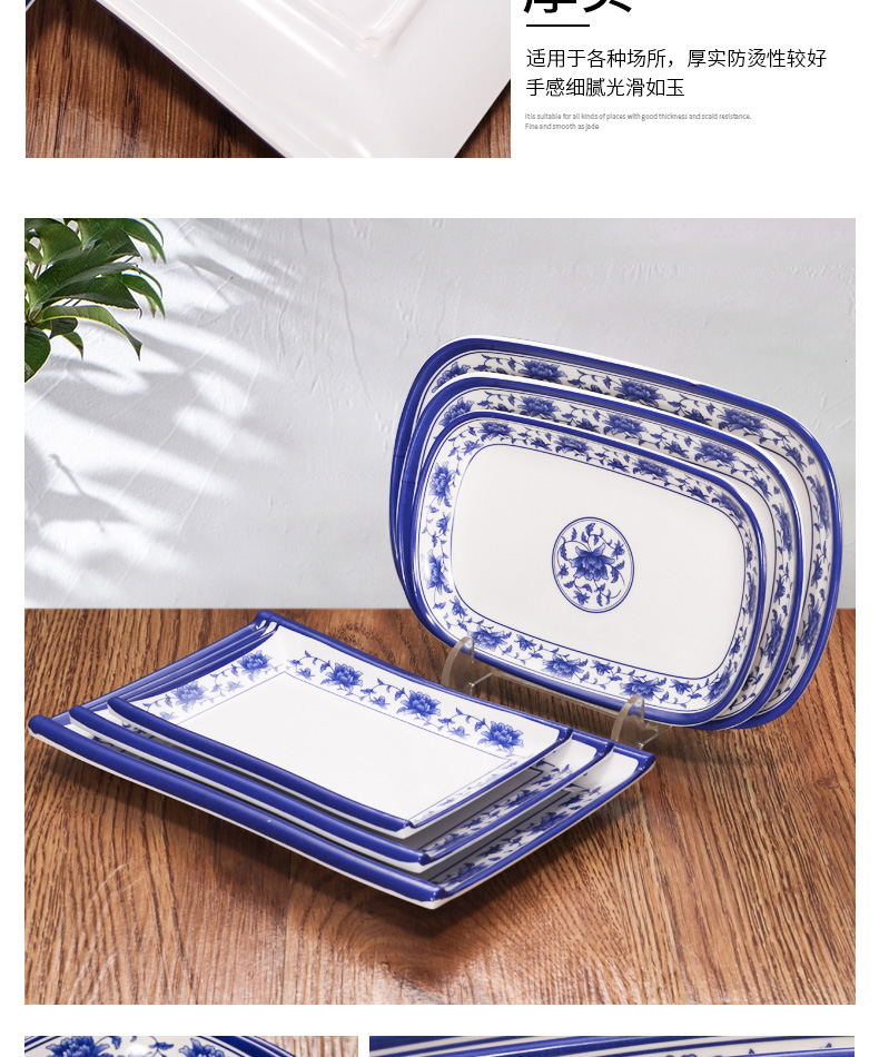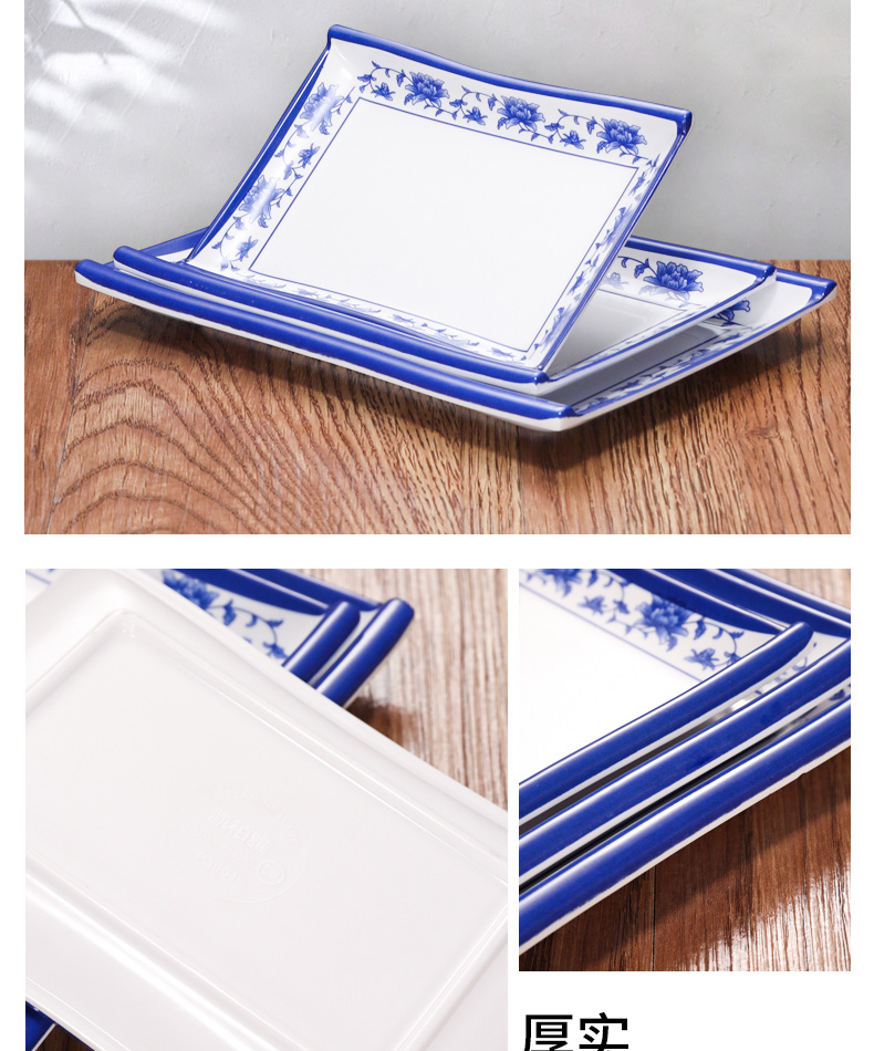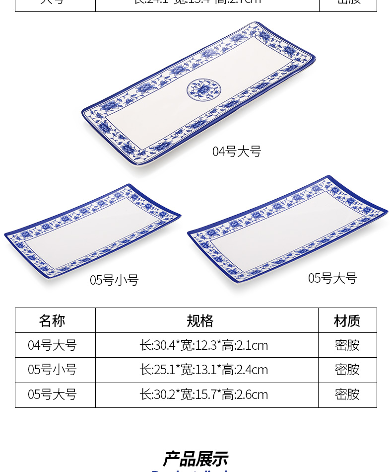 melamine plate blue and white porcelain plastic rectangular rice noodles plate dinner plate imitation porcelain tableware sushi plate cold dish commercial use 中文版