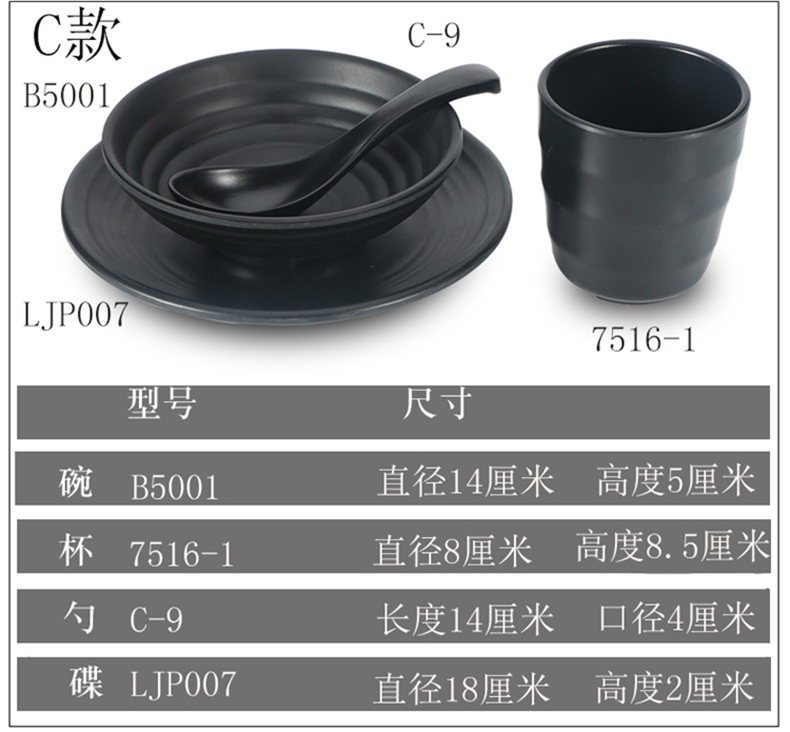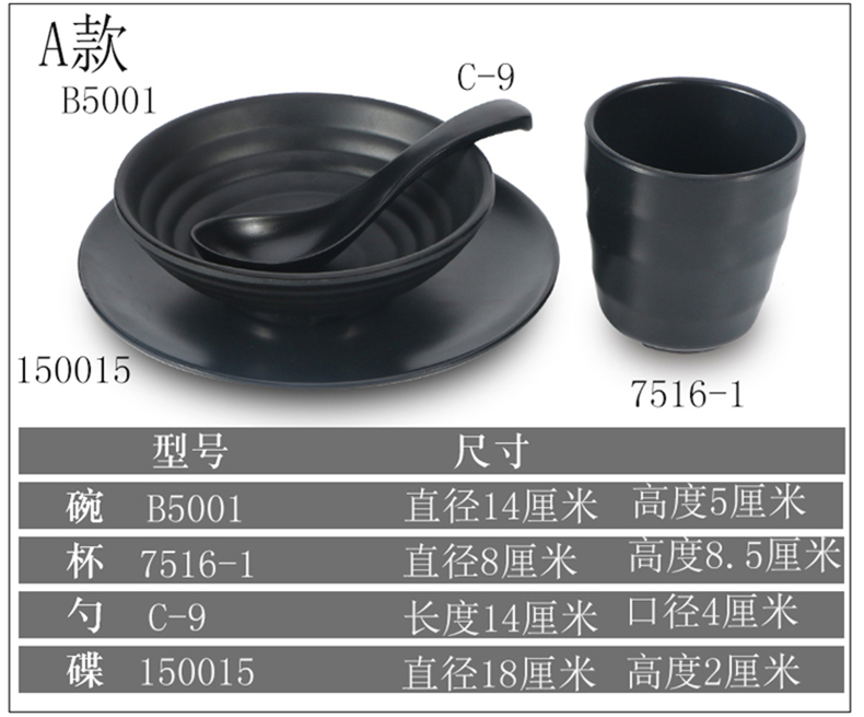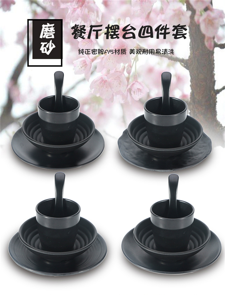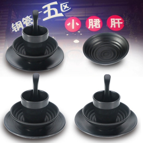 black seasoning bowl imitation porcelain string hot pot restaurant four-piece set supporting table melamine tableware small bowl bowl plate dish spoon 中文版