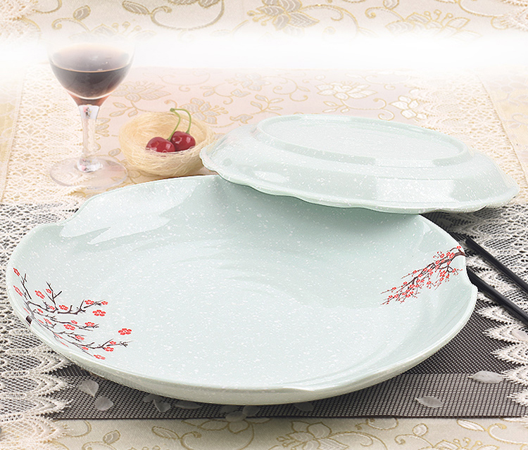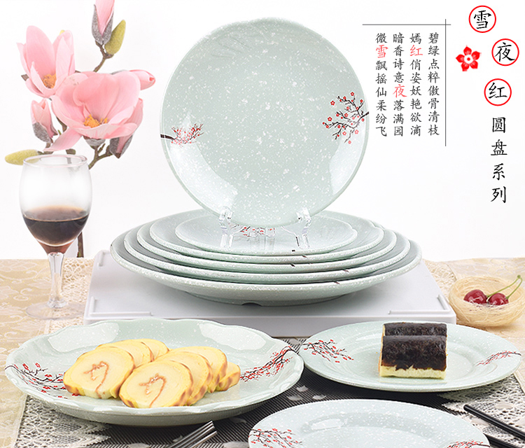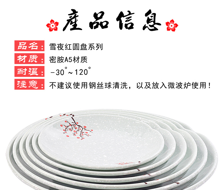 melamine snow night red round plate buffet fast food rice plate snack cake plate plastic dish porcelain-like tableware