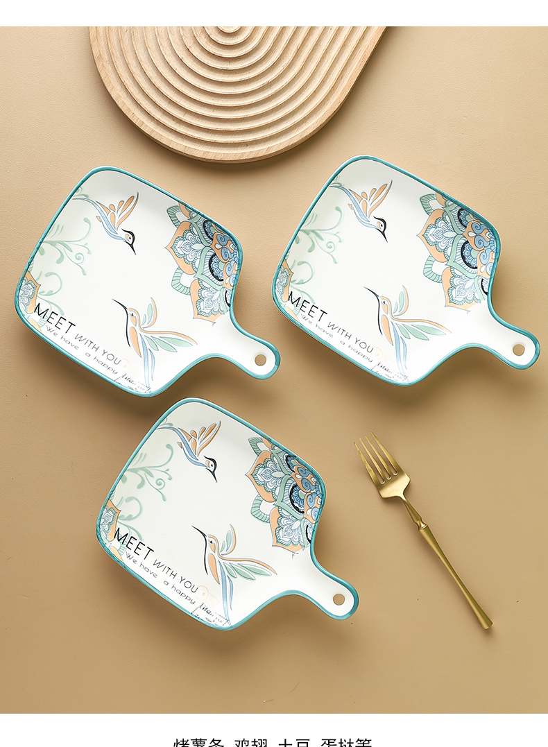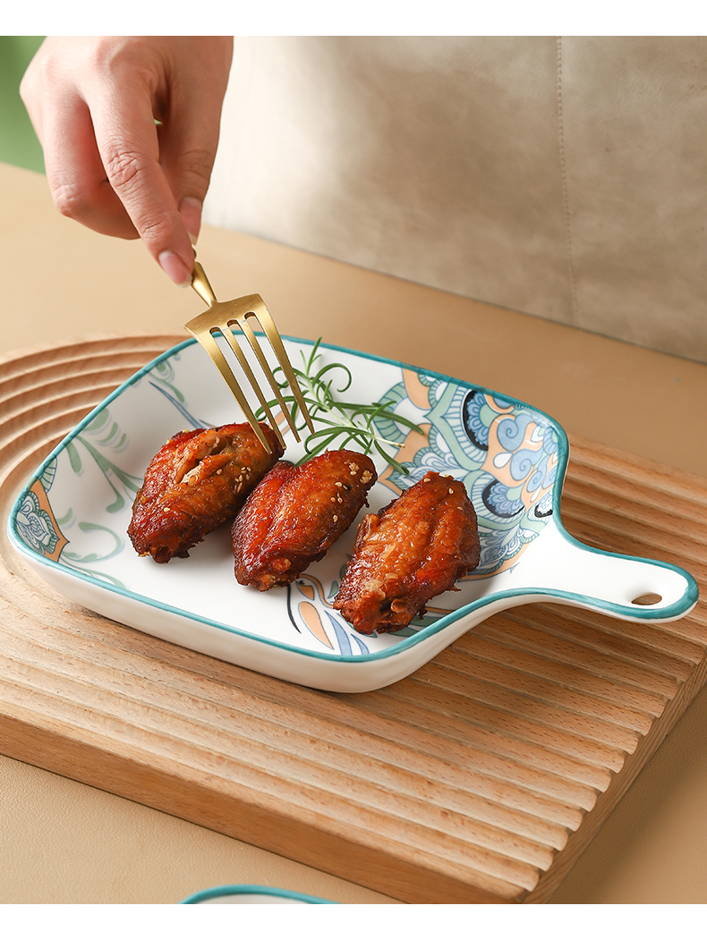 ceramic microwave oven with handle dish household hand-painted baking plate oven stall 中文版