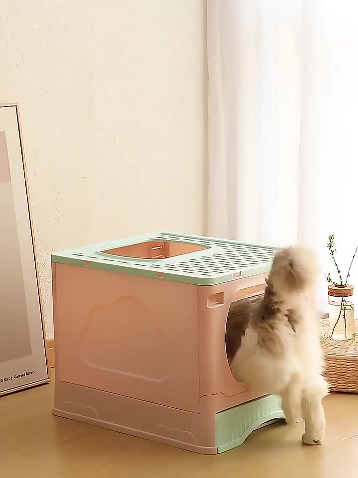 Cat Supplies Folding Fully Enclosed Top-in Litter Box Anti-Splash Deodorant Drawer Cat Toilet Pet Supplies 中文版