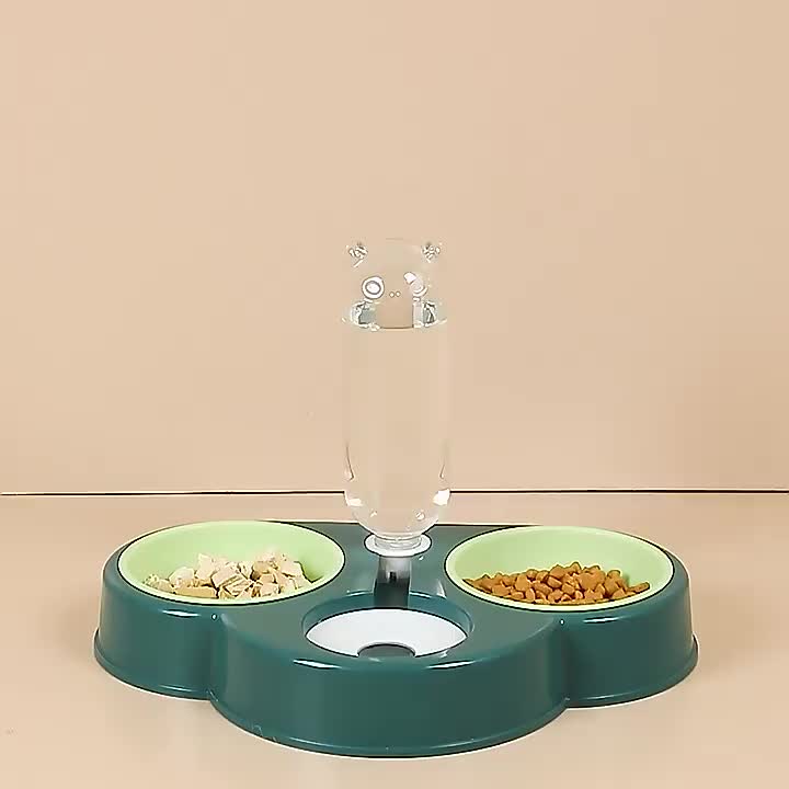 Cat Double Bowl Dog Bowl Automatic Drinking Water Food Basin Anti-Tumble Non-Slip Dog Rice Bowl Cat Food Bowl Drinking Bowl Pet Supplies 中文版