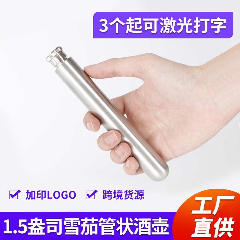 1.5 ounces portable outdoor stainless steel cigar-tube shaped small wine flask polished round bottom European and American style