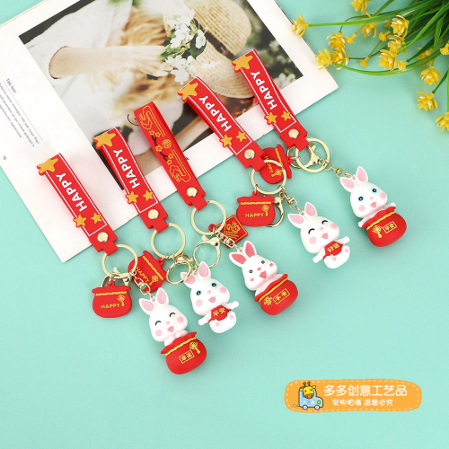 2023 personalized rabbit year keychain festive new year rabbit lucky rabbit doll keychain cars and bags ornaments wholesale 中文版